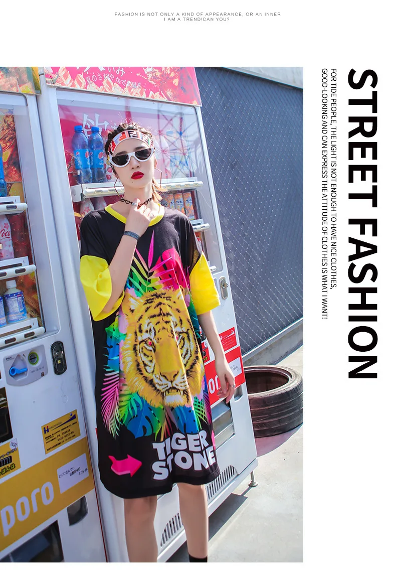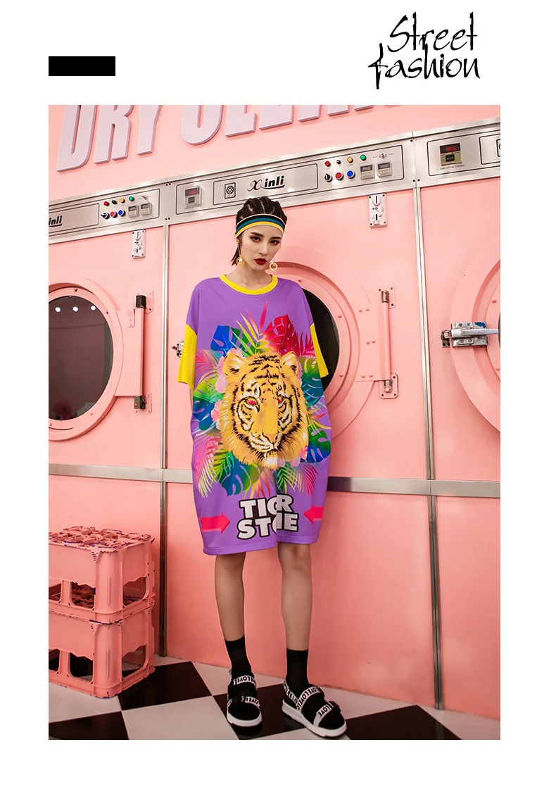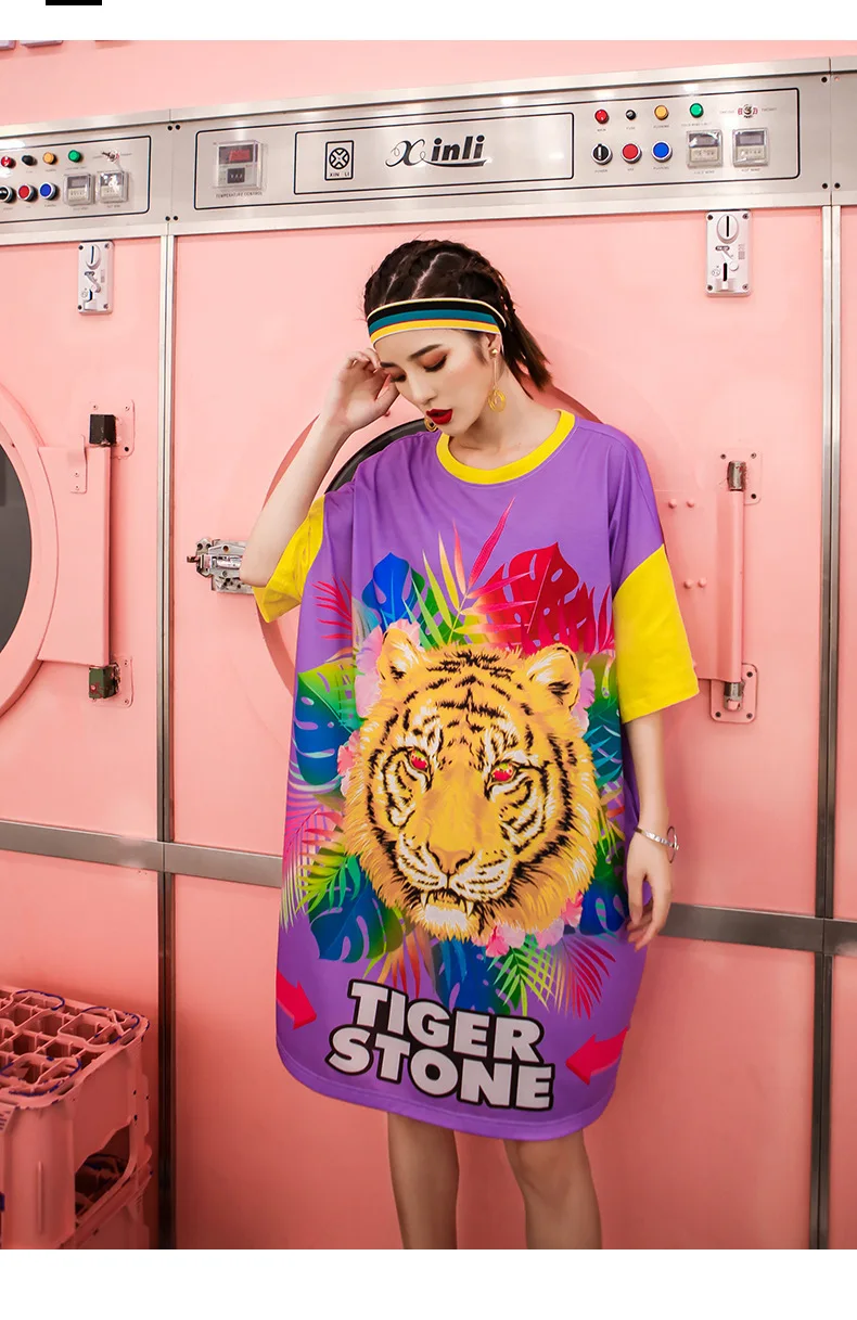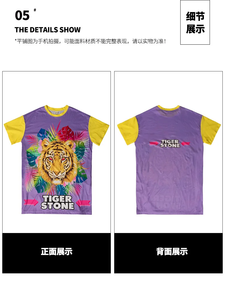 В комплект входит: 1 футболка с рисунком головы тигра для женщин; Футболка большого размера