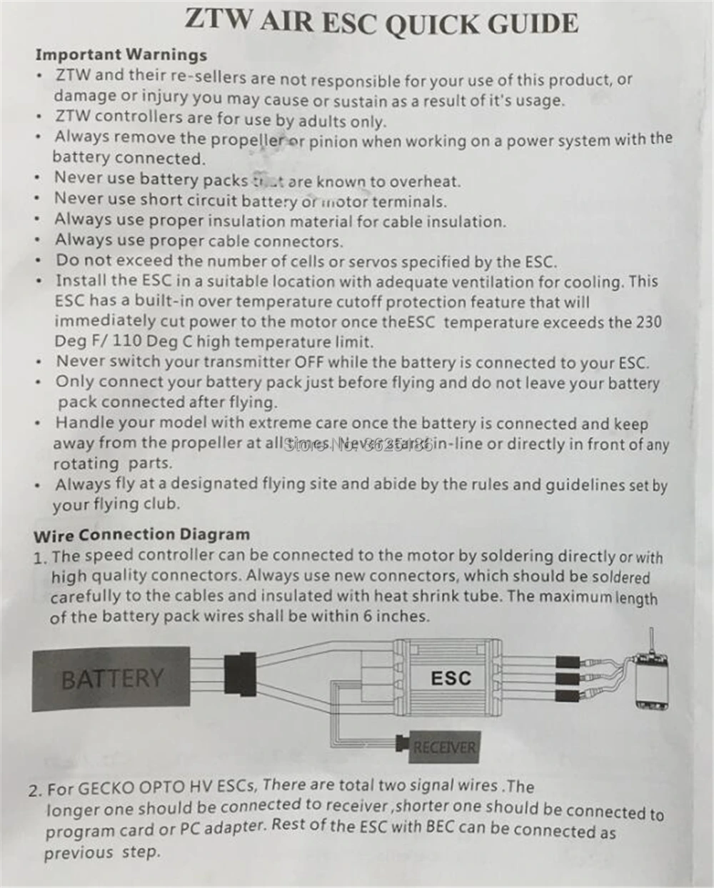 Можно установить режим пуска. Быстрая реакция дроссельной заслонки, и она имеет очень гладкую линейность контроля скорости. Совместим с самолетами и вертолетами.