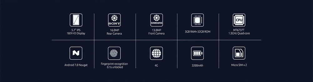 ● Дисплей:5,7 дюймов, 1440x720 пикселей ips экран