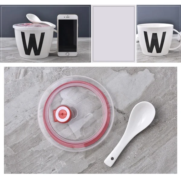 Материал: 800 мл Материал: Керамика Крепление: ложка + крышка Размеры: 13x10 см 1. Кружка объемом около 800 мл, также может использоваться в качестве ящика для хранения и чаши для завтрака. 2. Крышка с резиновым кольцом, может избежать попадания пара воздуха и воды в чашку. 3. С ручкой и модным стилем.