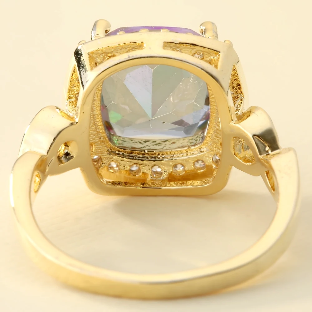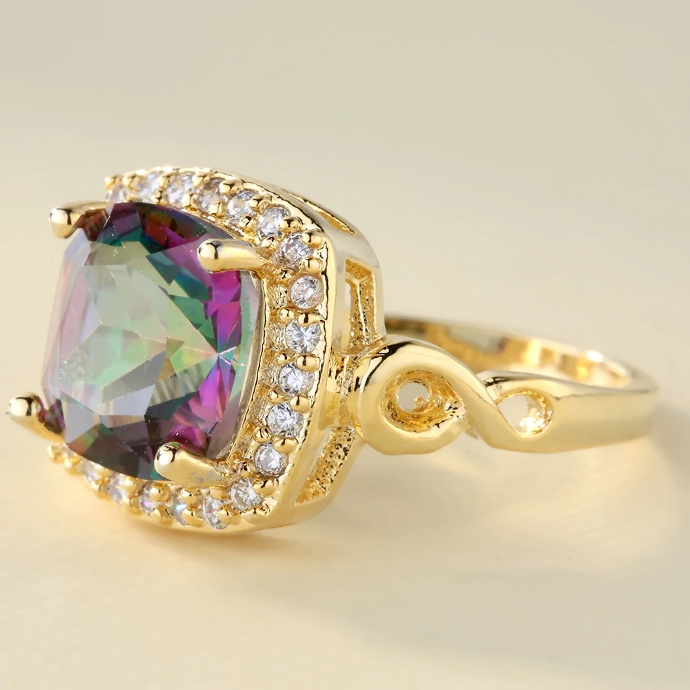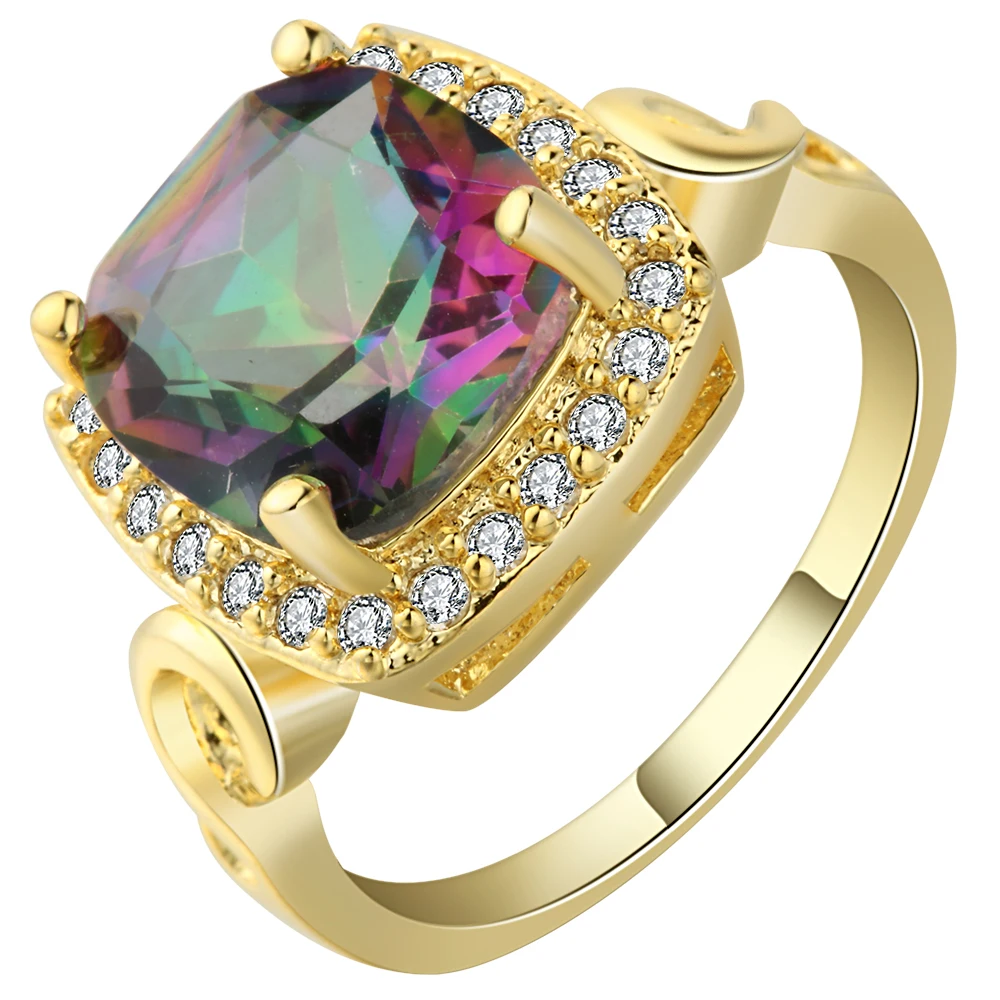 Роскошное золотое радужное квадратное кольцо с кубическим цирконием ааа циркон классические свадебные ювелирные изделия кольца для женщин день рождения оптовая продажа bague