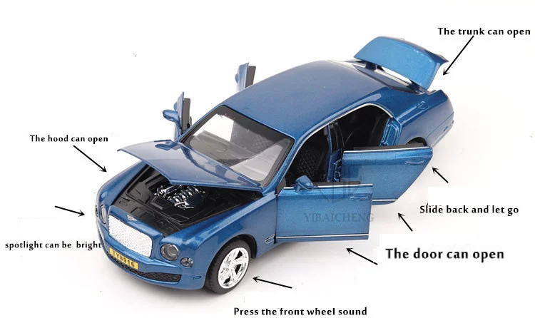 Модель автомобиля из сплава Mulsanne, модель игрушки, 6 открывающихся дверей, металлическая Автоматическая Литьевая модель, светильник, подарок для детей, коллекция игрушек, 1/32