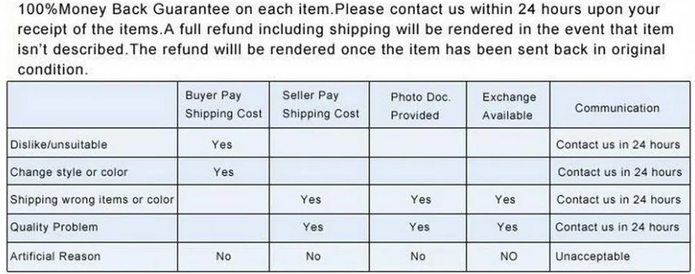 Мы зависим от вашего удовлетворения к успеху. Поэтому, ваш отзыв определенно важен для нас. Если вы довольны своей покупкой, пожалуйста, оставьте нам положительный отзыв, и наш автоматический отзыв сразу же оставит вам положительный отзыв. Наш главный приоритет-обеспечение быстрого и четкого общения с нашими клиентами. Пожалуйста, свяжитесь с нами перед тем, как оставить отрицательный отзыв, если вы не удовлетворены своей покупкой каким-либо образом.