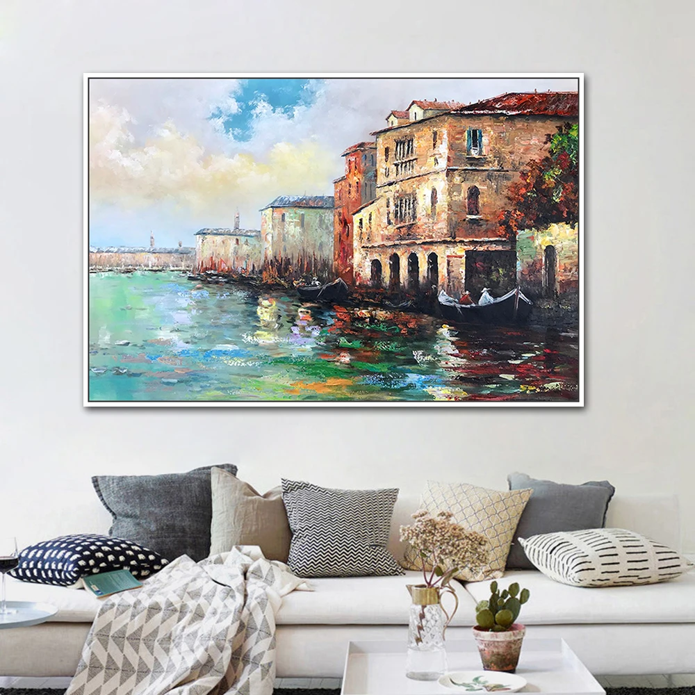 Описание товара:Mintura Настенная картина для гостиной картины маслом на холсте Ручная роспись деревни у моря декор для отеля настенное искусство без рамки.
