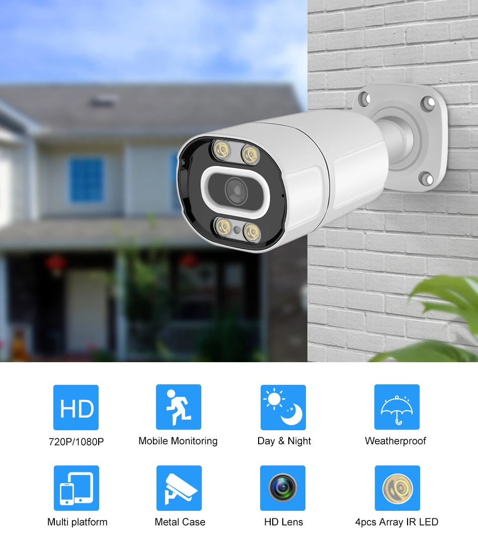 Smar H.265 20FPS 2MP IP Камера 2,8 мм широкоугольный объектив H.264 1MP открытый Водонепроницаемый видеонаблюдения Камера Ночное видение 48V POE опционально