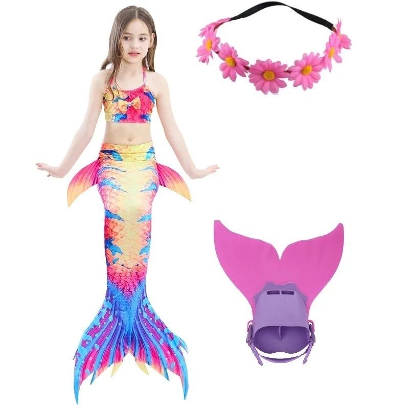 Включает в себя:1 * хвост русалки + 1 * бюстгальтер (или топ-труба) + 1 * шорты+ 1 * Моноласты