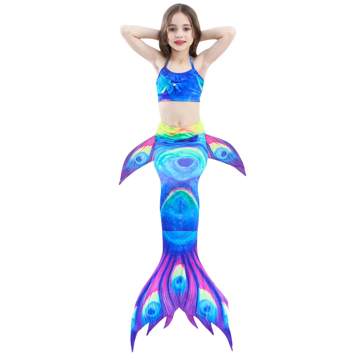 Детский хвост русалки с монофина Купальник костюм одежда для косплея девочек детские купальные костюмы с хвостом русалки для плавания