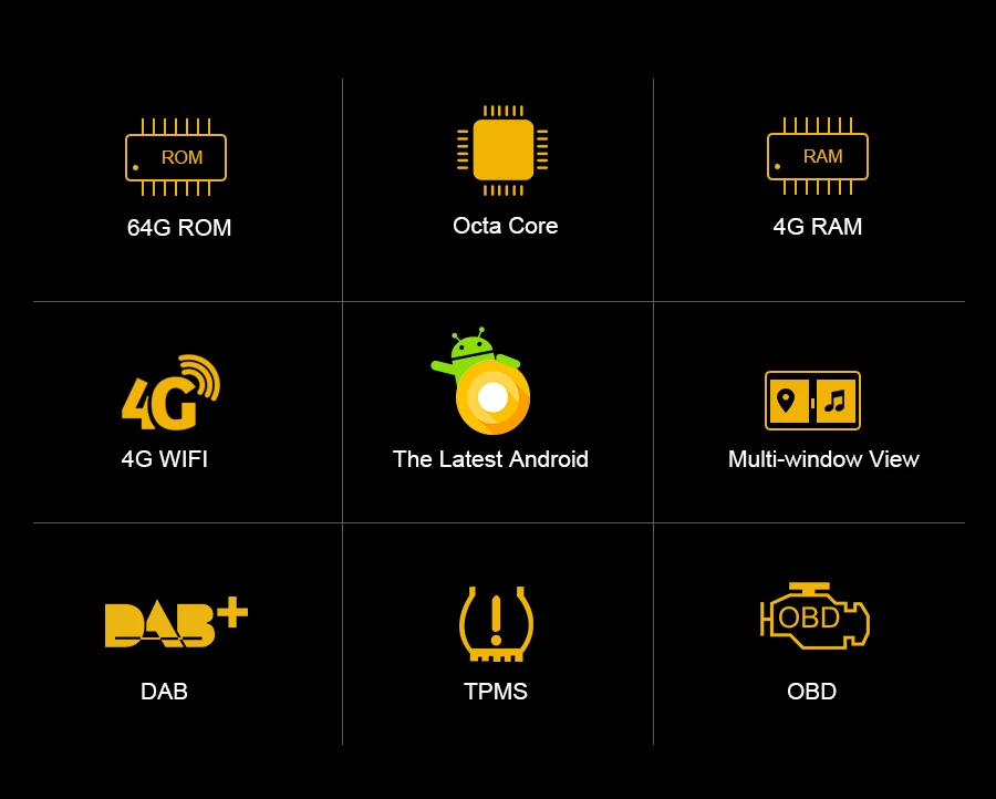 Экран 7 ''разрешение экрана 1024x600, емкостный сенсорный экран, Мультитач 5 Операционная система Чистая система Android 10,0 с установленным игровым рынком; Интерфейс разработан специально для автомобиля, с многоязычным меню OSD, таким как русский, английский, польский, иврит, португальский, немецкий, арабский, румынский, греческий и т. Д. ЦП 8 ядер и режим сна-мгновенно! Память С 2 usb-портами, один для 3G ключа, а другой для USB флэш-накопителей или мобильных HDD. Цифровое ТВ Дополнительный внешний цифровой ТВ-бокс, он может быть сенсорным управлением на экране. Радио AM, FM, RDS, как цифровая обработка сигналов, сохранение и расширение до 30 станций чипсет NXP6686 PHILIPS-высокое качество приема, тюнер помещается в оригинальные радиомашины премиум-класса. Навигация GPS + ГЛОНАСС приемник: GPS чип UBX-M8030-KT, 60 каналов. Внешняя антенна в комплекте навигация с дорожным потоком, маршрутом голосового набора и обновлениями онлайн-карты. Поддерживает всю навигацию для Android: Yandex, Navitel, iGO, Sygic, Tomtom. Поддерживает функцию двойной зоны, может одновременно запускать несколько навигационных программ и музыку или видео! Примечание: GPS и ГЛОНАСС не могут работать вместе, и ГЛОНАСС только для российских клиентов. Музыка Онлайн радио Музыка: MP3, WMA, WAW, AAC, AC3, OGG, FLAC и другие. Видео Онлайн ТВ, видео: Full HD 1080p любые форматы: AVI (DivX, Xvid, Mpeg4, h.264), MKV, WMV, FLV, webM и другие (мы рекомендуем бесплатный видео плеер MX) Микрофон С внешним микрофоном, входящим в комплект (разъем Mini-Jack 3,5 мм), он подходит только для телефонных звонков по bluetooth. Со встроенным микрофоном для приложений, установленных на радио. Bluetooth Встроенный, внешний микрофон готов, для громкой связи, С Bluetooth телефонной книгой для поиска, беспроводное воспроизведение музыки с вашего телефона (A2DP) Функция OBD2 С помощью диагностики Bluetooth, скорости чтения и бортовой информации. Mini-ELM327 BT беспроводной адаптер OBD2 диагностический разъем. Ваш автомобиль должен быть с разъемом для OBD II, WIFI Wi-Fi 802.11b / g / n 150 Мбит встроенный, с внешней антенной для укрепления приема сигнала WIFI. 3G Хост Поддержка 3G USB модемов (Любая sim-карта), набор-вариант, ссылка на описание. Поддержка 3G + WiFi модемов и маршрутизаторов Возможность приема через Wi-Fi Интернет с вашего телефона (необходимо включить его точка доступа WiFi) USB Хост-разъемы USB2.0 OTG 2 шт. Задний Поддержка жестких дисков USB ТБ и периферийных устройств. Функция зеркального соединения Поддержка функции mirror link позволяет dvd discreen отображать такое же изображение или видео на экране ваших смартфонов (требуется O.S. Android 4,0 +, iOS 7,0 +). Камера заднего вида Встроенный видео вход камеры для подключения камеры заднего вида после рынка для безопасной парковки. Примечание: камера заднего вида не входит в посылка. Аудио-видео аудио разъемы AUX 4 аудио линейный выход (тюльпан) + отдельный линейный регулируемый выход для сабвуфера. EQ LF MF HF фильтры поддержка среза + громкий Звук ULF TDA7851 MOSFET 4x45W / 4Ohm пиковая мощность на chetyrehomnoy Акустике 4x80 Вт/2 Ом пиковая мощность при dvuhomnoy Акустике 4x55 Вт/2 Ом @ 14,4 В, 1 кГц, 10% Отличная работа при нагрузке 2 Ом Искажение AFC соответствует классу Hi-Fi.