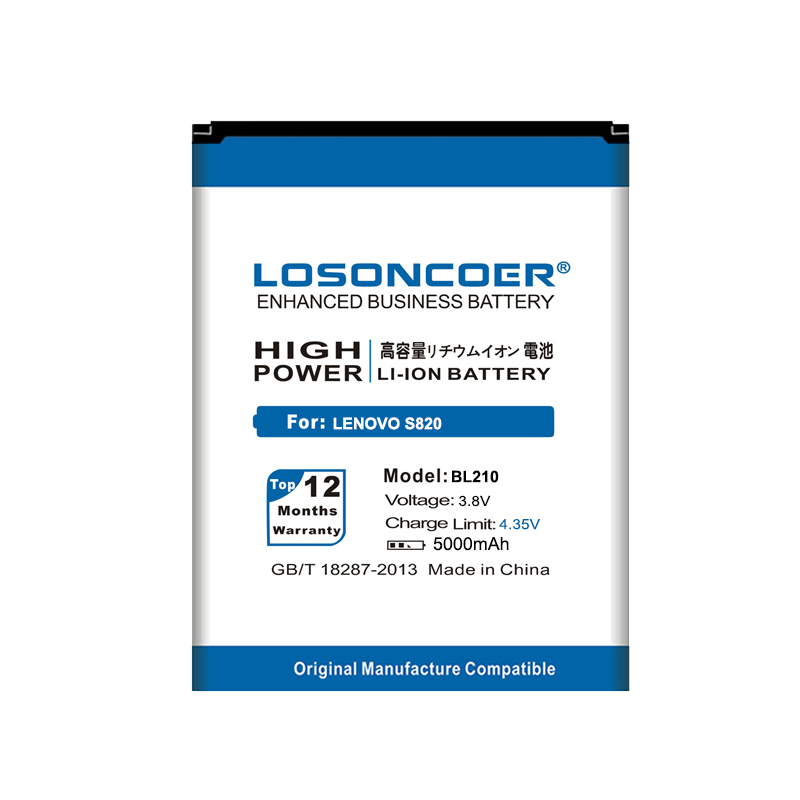 LOSONCOER 5000mAh BL210 Battery For Lenovo S820 A656 S650 S658t S820E A770E A750E A766 A658T A828t A536 Phone Battery
