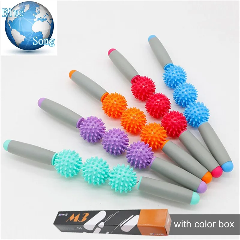 Тренажерный зал массажный ролик для мышц палка Для Йоги массаж тела расслабиться инструмент мышечная палочки с 3 точечный из серебряные браслеты