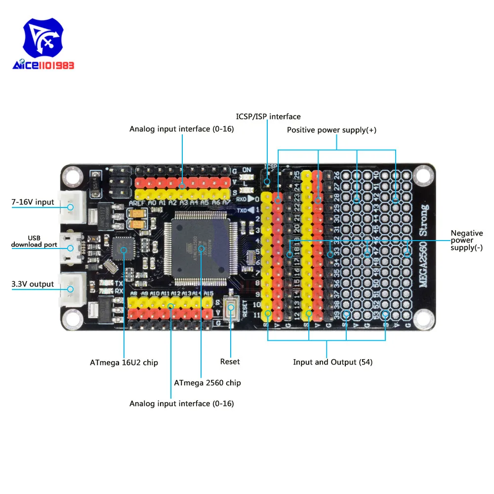 Плата микроконтроллера diymore DM MEGA2560 плата Mega2560 ATmega2560 ATmega16U2 для Arduino Micro USB 16
