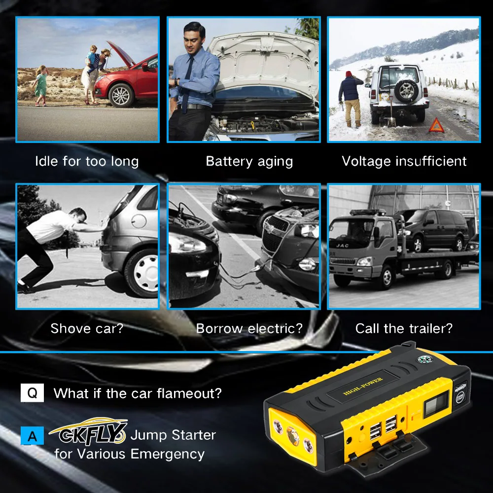 GKFLY стартер скачка автомобиля 16000mAh 12V переносной пусковое устройство Кабель Power Bank Автомобильный Аккумулятор Booster Зарядное устройство для бензинового дизельного автомобиля