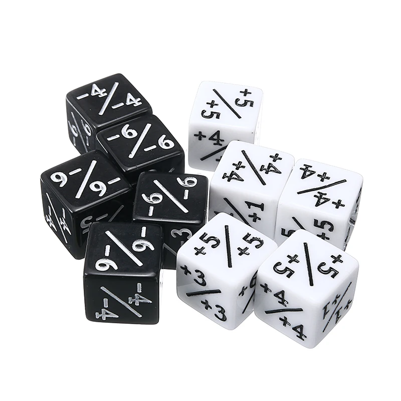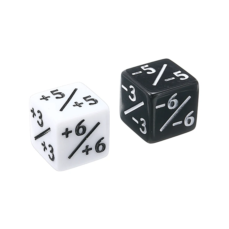 Эти кости делают отслеживание характеристик ваших существ намного проще. Даже когда стата изменится, вы можете просто вращать кости и увеличивать весь путь от + 1/+ 1 до + 6/+ 6.