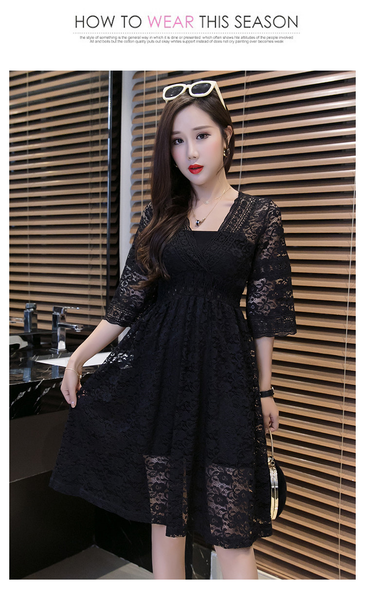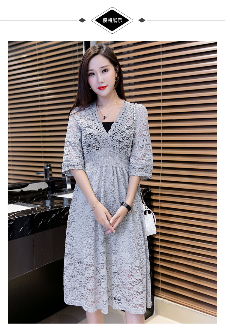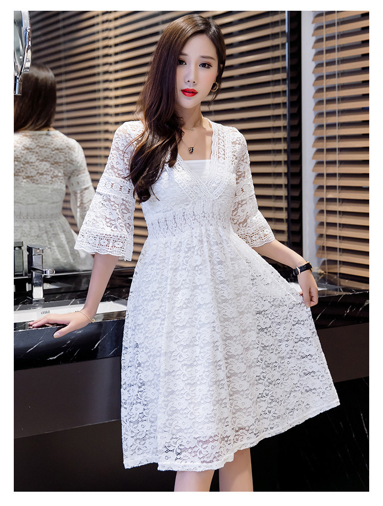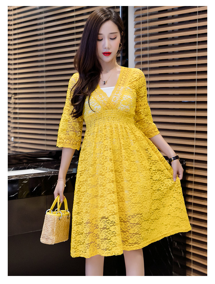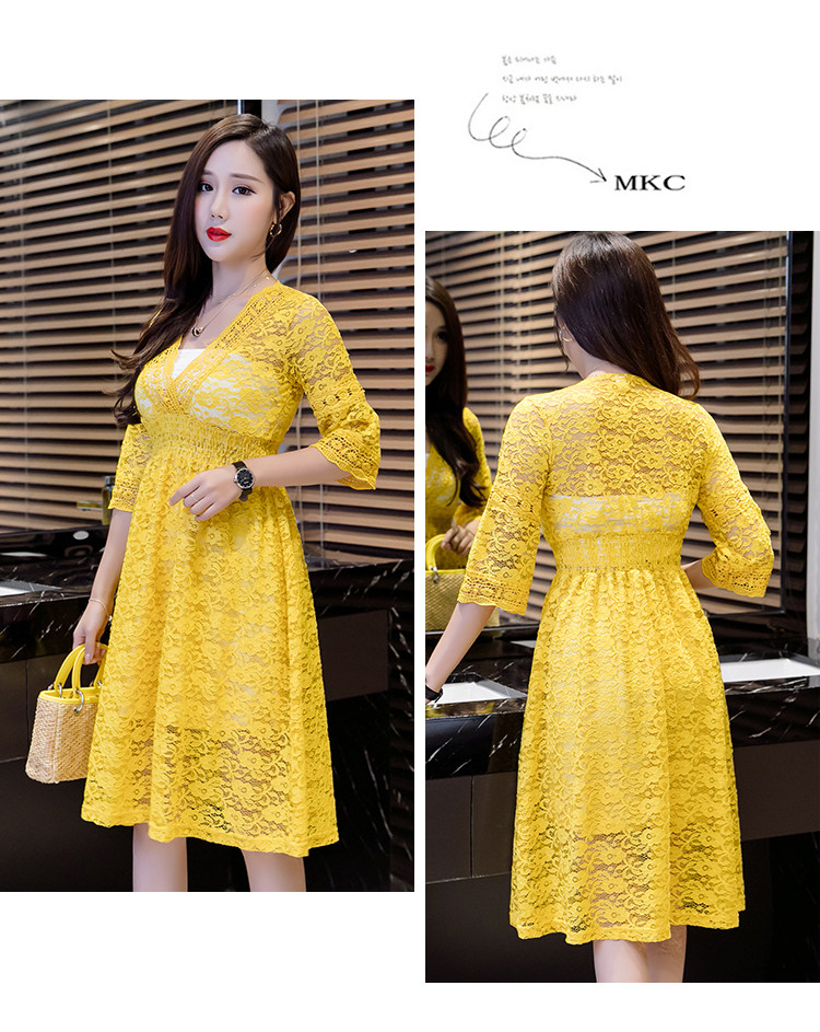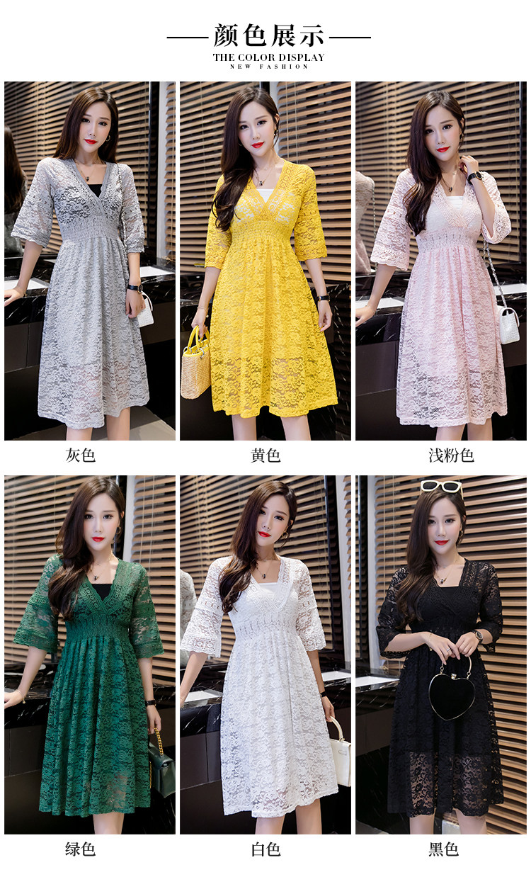 Для девочек V шеи половина рукав «фонарик» тонкая талия ушко выдалбливают полный кружевное платье Большие размеры S-3XL в белый черный зеленый розовый желтый серый