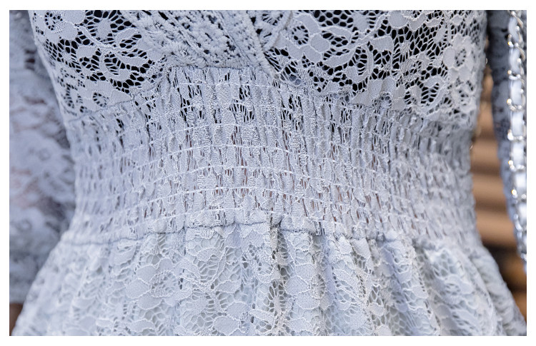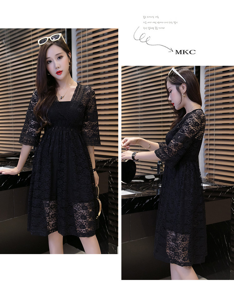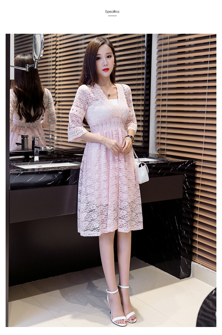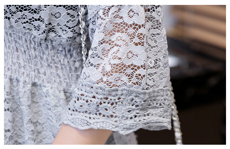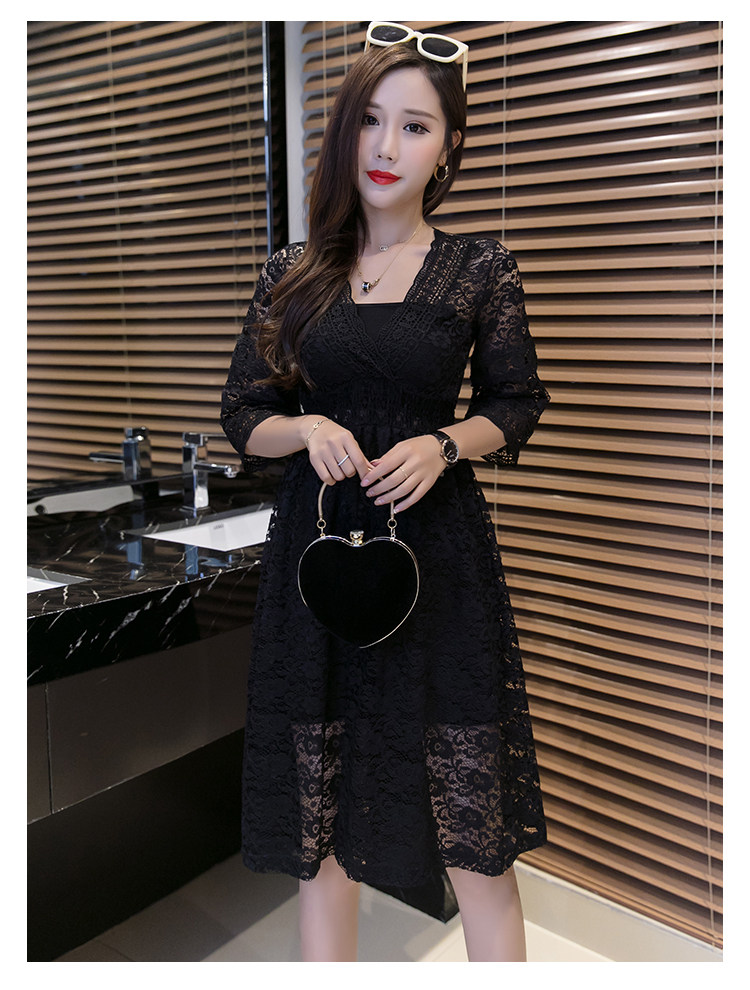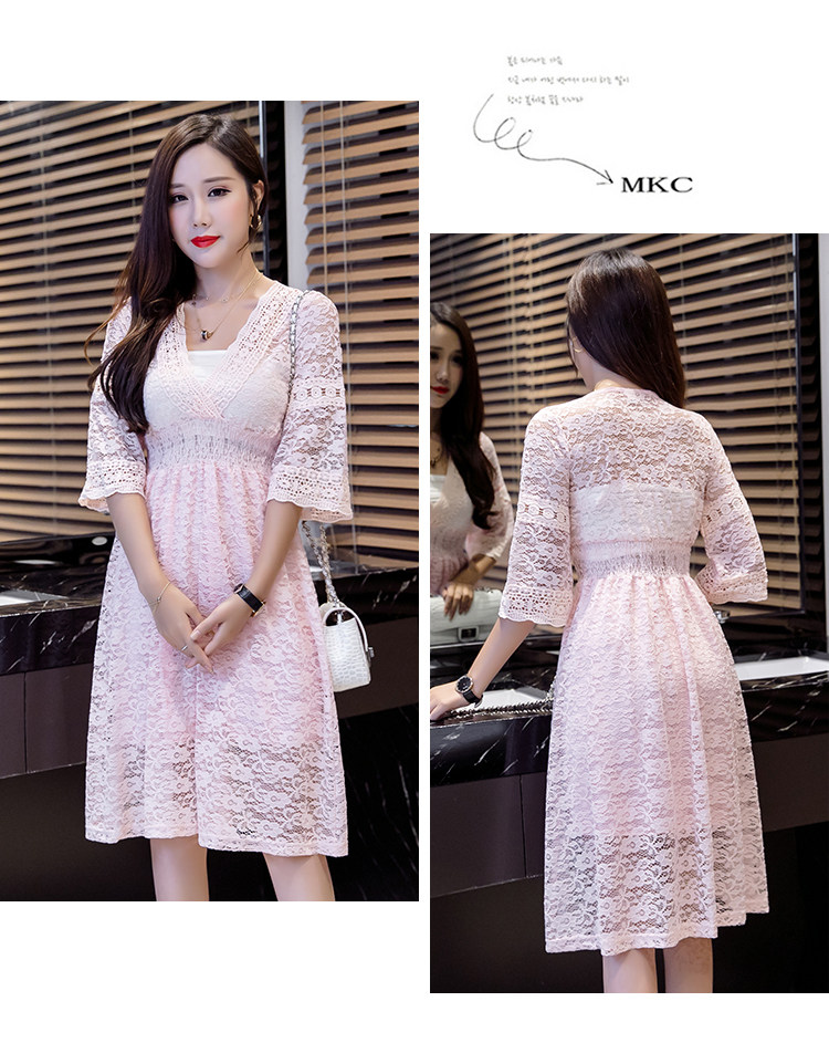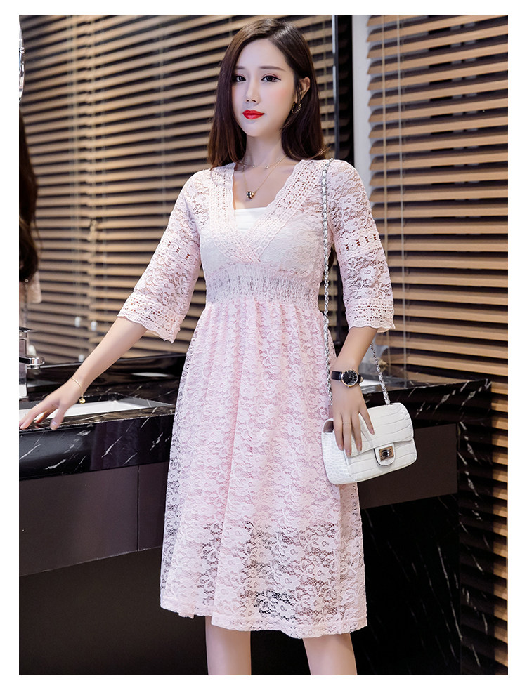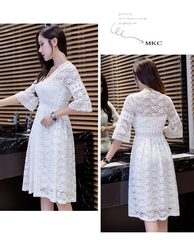 Для девочек V шеи половина рукав «фонарик» тонкая талия ушко выдалбливают полный кружевное платье Большие размеры S-3XL в белый черный зеленый розовый желтый серый