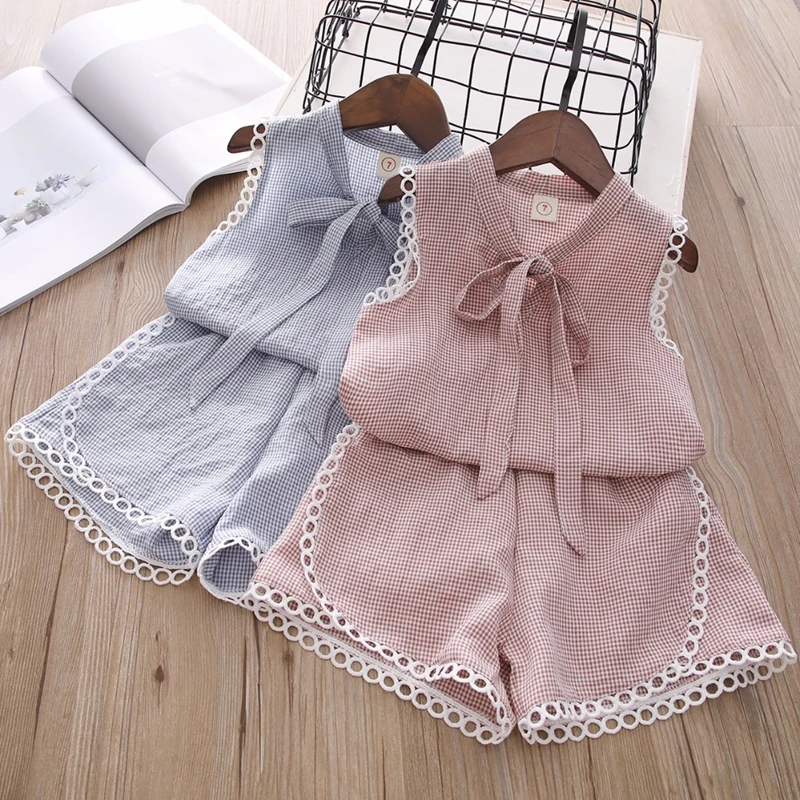 Комплект летней одежды на бретельках без рукавов для маленьких девочек розовый