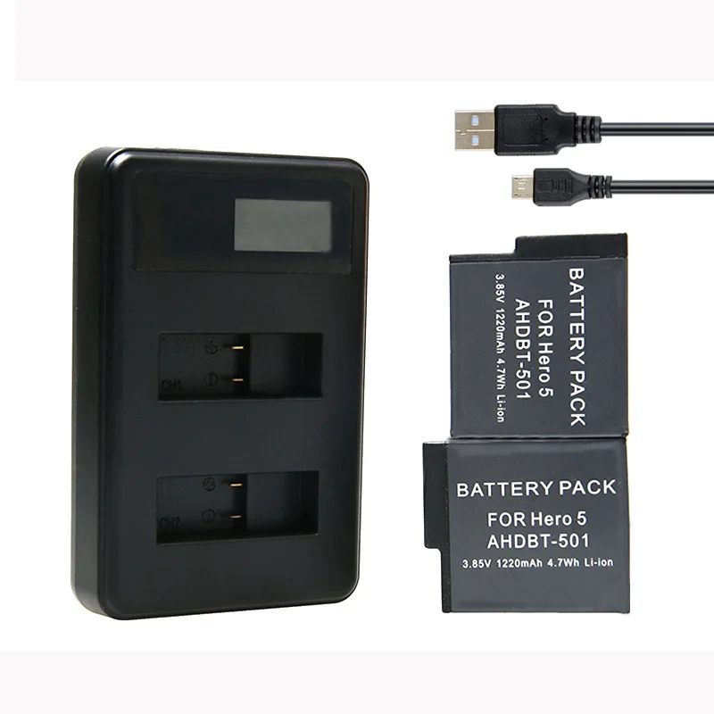 AHDBT-501 зарядное устройство с двойным зарядным ЖК-дисплеем, usb-кабель для Gopro Hero 5 6 7, аксессуары для спортивной камеры