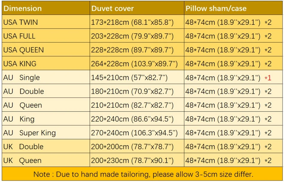 1 пододеяльник: 220*240 см (86,6 "x 94,5")