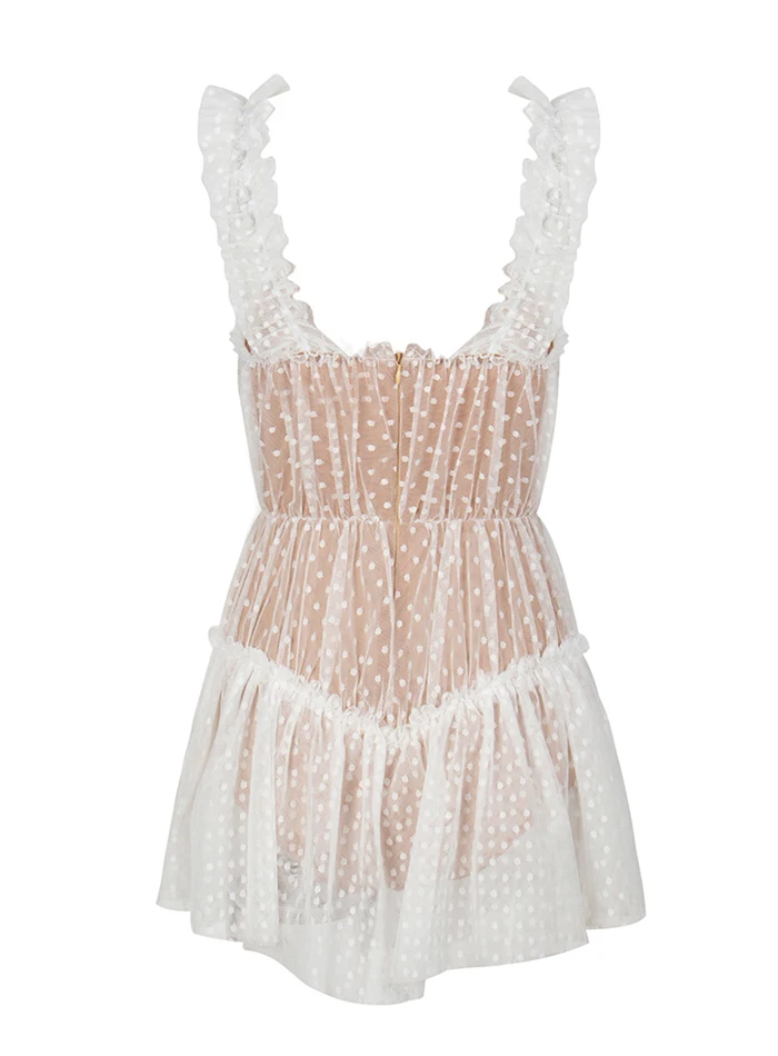 Женский кружевной комбинезон белый короткий с вырезами элегантный пляжный