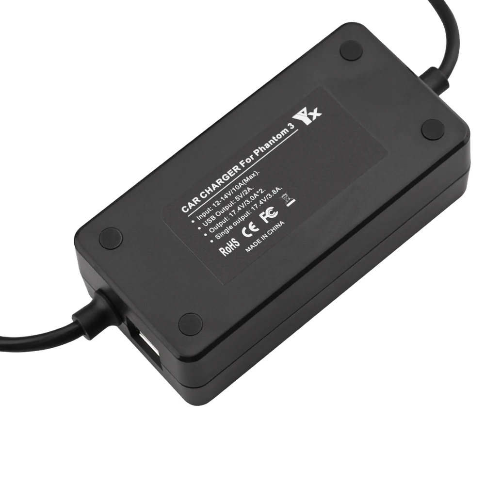 Параметры: Вход: 12-16 В 10A Выход: 17,4 в 6,0а (1 Аккумулятор: 3,8а; 2 батареи: 3,0а * 2) Вес: 220 г Время зарядки: около 55 минут для 1 батареи; Около 90 минут для 2 батарей Примечание: порт зарядки контроллера подходит только для phanomt 3 ADV PRO, не подходит для версии SE STA. Посылка включает в себя: 1 шт. автомобильное зарядное устройство Phantom 3 (без аккумулятора и контроллера)