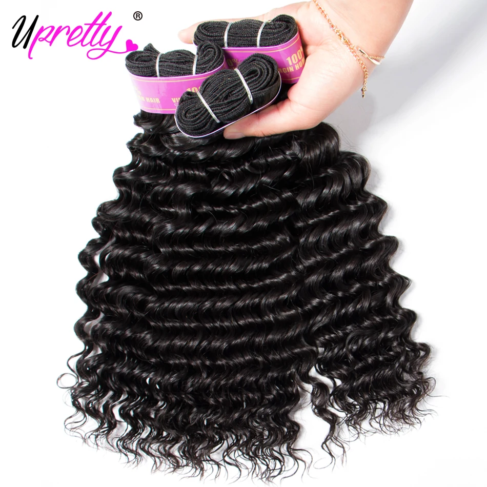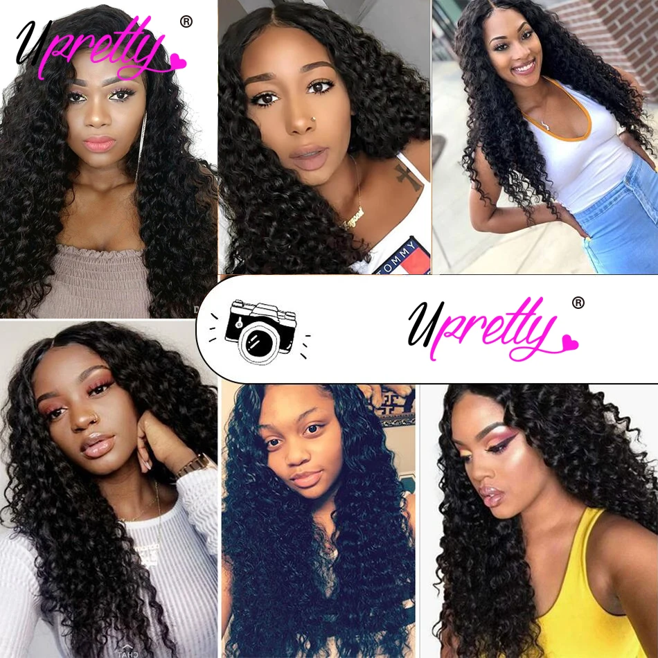 Upretty волосы глубокая волна пряди с фронтальной HD прозрачной кружевной застежкой с пряди бразильские человеческие волосы 3 пряди с фронтальной