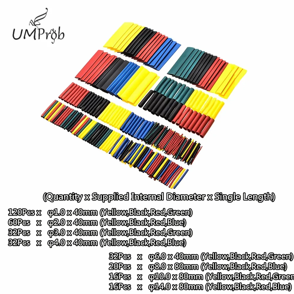 (Количество x внутренний диаметр x Одиночная длина)120 шт x 1,0 1,0x40 мм (желтый, черный, красный, зеленый)60 шт. x 2,0 2,0x40 мм (желтый, черный, красный, синий)32 шт. x 3,0 3,0x40 мм (желтый, черный, красный, зеленый)32 шт. x 4,0 4,0x40 мм (желтый, черный, красный, синий)32 шт. x 6,0 6,0x40 мм (желтый, черный, красный, зеленый)20 шт. x 8,0 8,0x80 мм (желтый, черный, красный, синий)16 шт. x 10,0 10,0x80 мм (желтый, черный, красный, зеленый)16 шт. x 14.14,0x80 мм (желтый, черный, красный, синий)