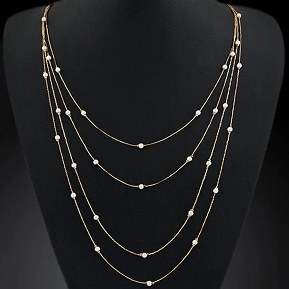 Особенности: 4 слоя, Длинная тонкая цепочка, Очаровательное ожерелье с бусинами
