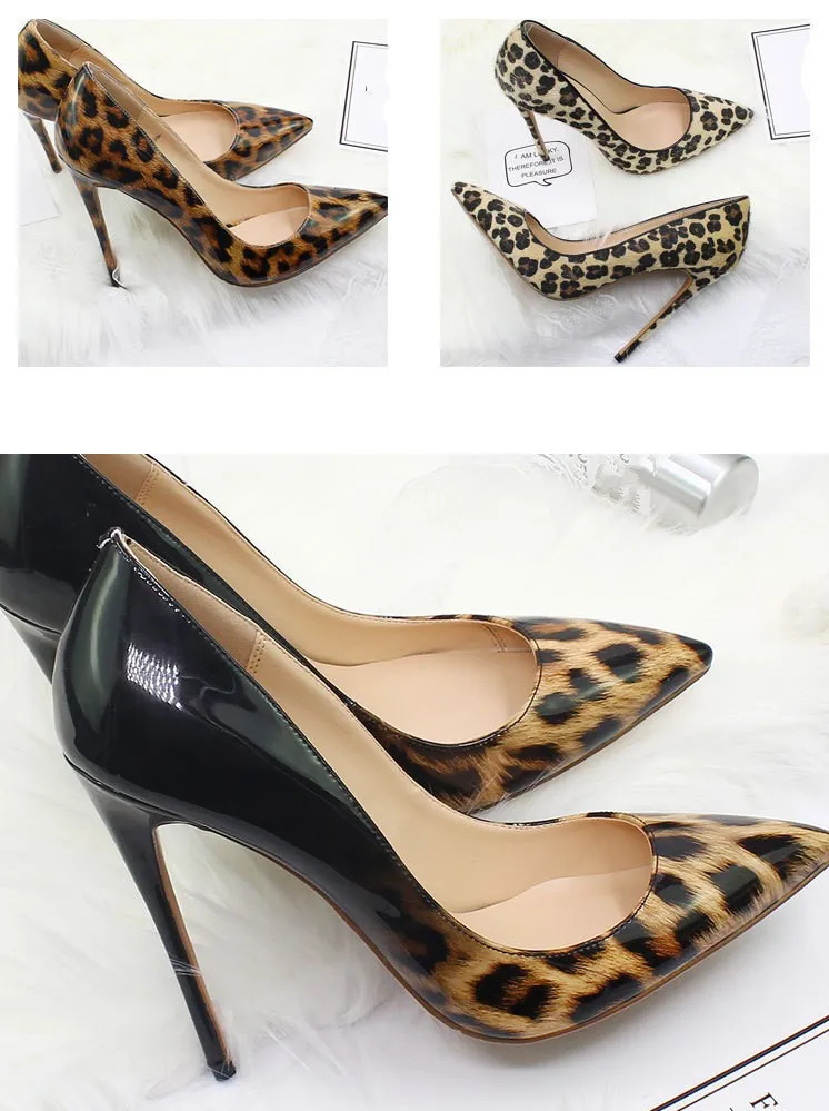 | Пикантные женские туфли из натуральной овечьей кожи на высоком каблуке 10 см с леопардовым принтом; Офисные женские модельные туфли-лодочки с острым носком; Большие размеры | |