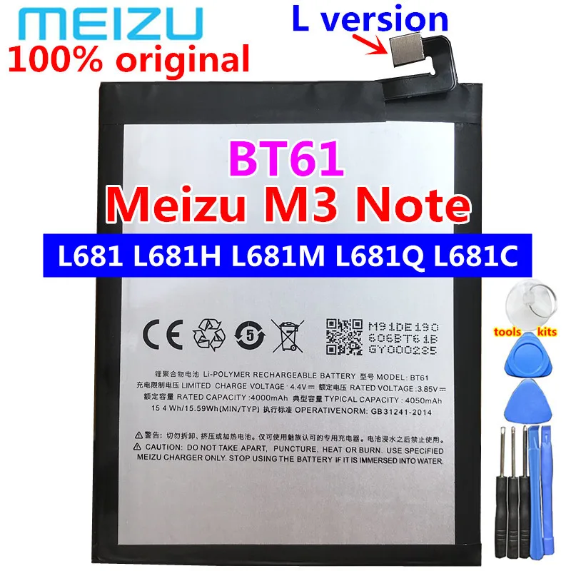 100% Новый оригинальный аккумулятор 4000 мАч BT61 для Meizu L версии M3 Note L681 L681H L681M L681Q L681C