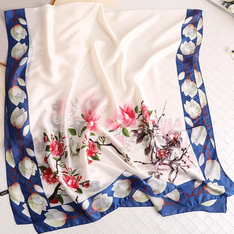 Мода bandana100 % шелковый шарф Роскошные женские брендовые шарфы для женщин шаль Высокое качество принт хиджаб обертывание 180*90 см