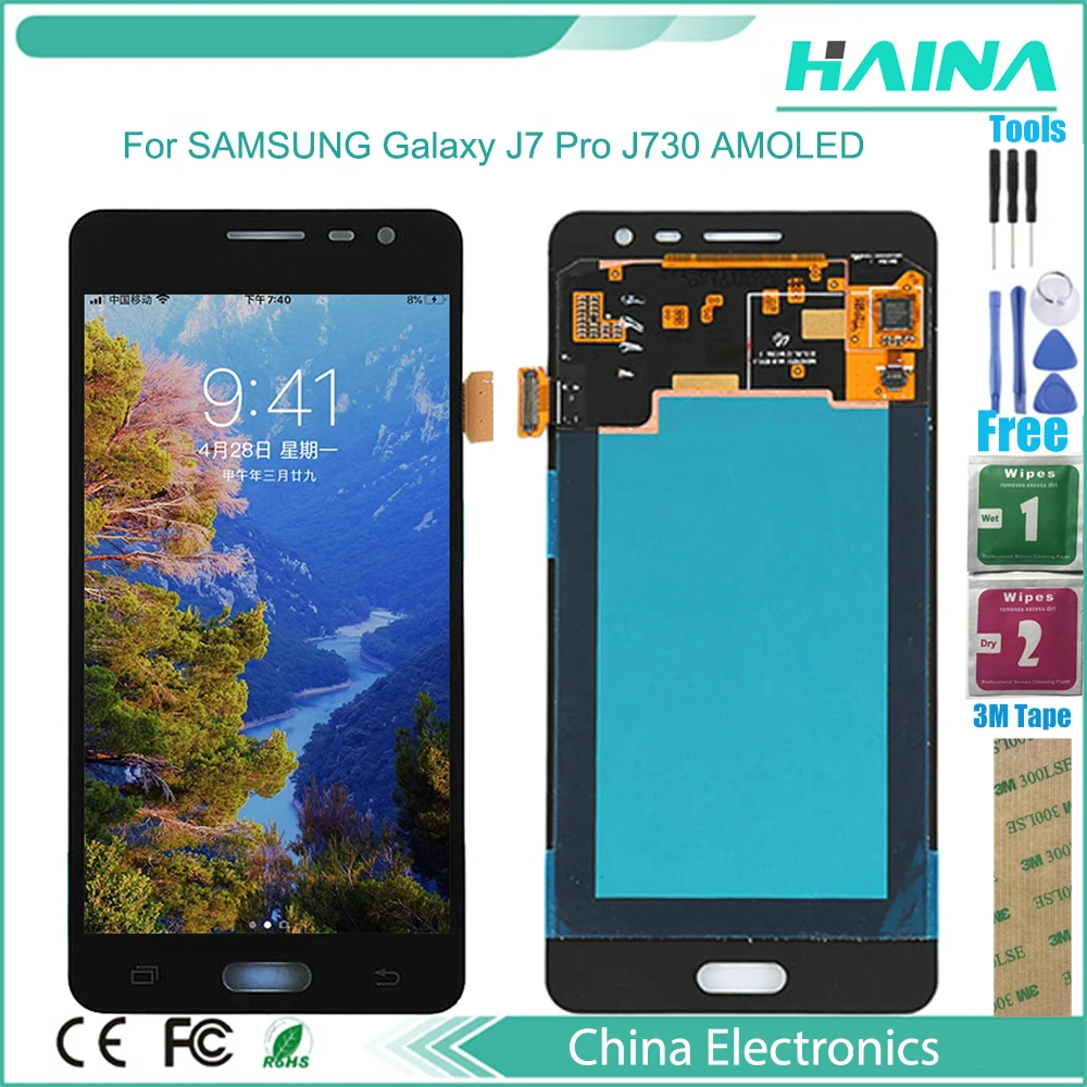 ЖК-дисплей для SAMSUNG Galaxy J7 Pro, сенсорный экран с цифровым преобразователем, золотисто-голубой цвет, J730F, Самсунг J7 2017