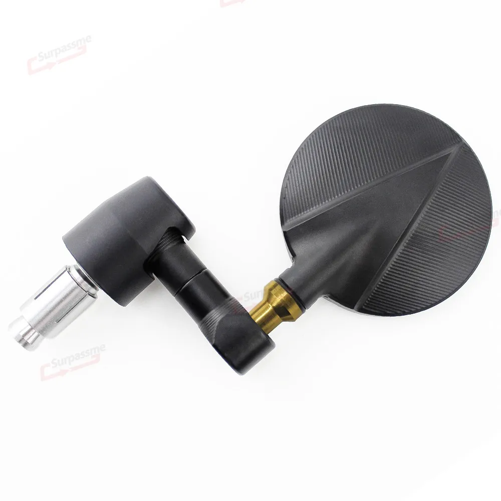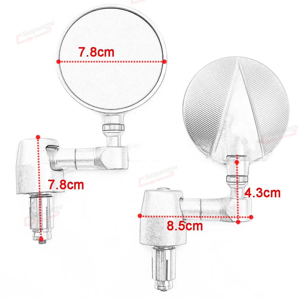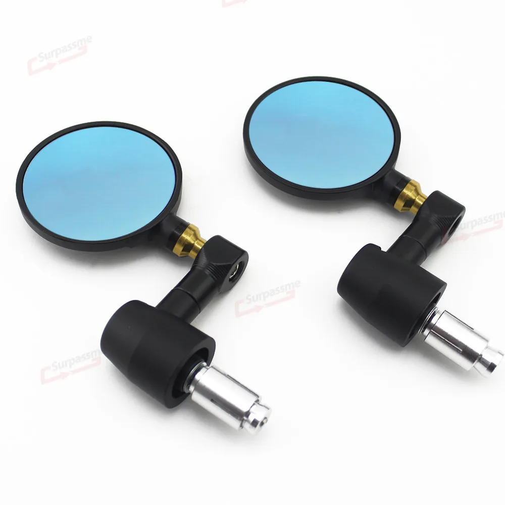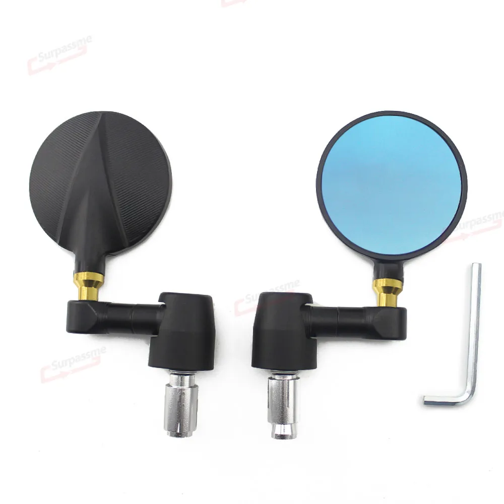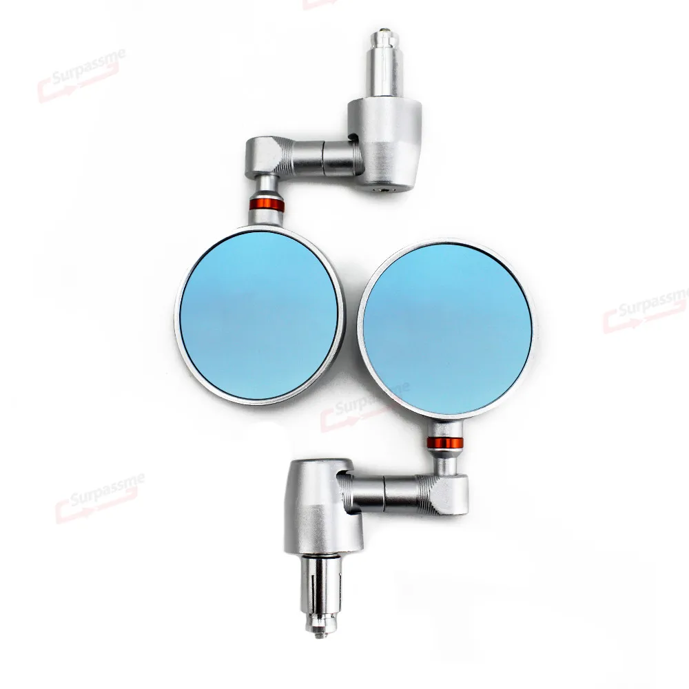 100% абсолютно новый Материал: алюминий с ЧПУ Цвет: серебристый, черный Поворот: Регулировка 360 градусов Количество: одна пара (слева и справа) Размер зеркала: 3 дюйма (8 см) Вынос руля Длина: 3 1/3 "(8,5 см) Диаметр монтажного винта: 7/8 ", 22 мм Крепление на руль Цвет зеркала: синий