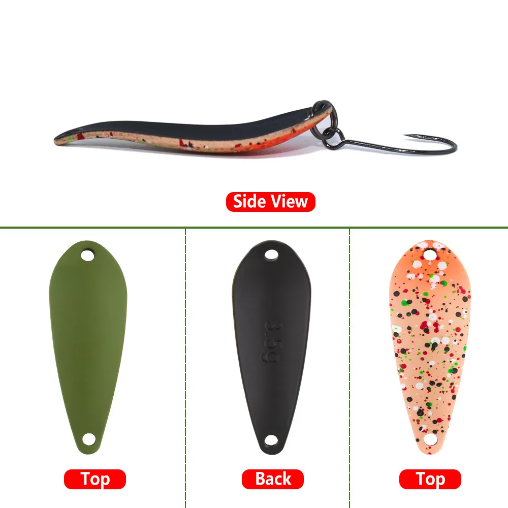 Качественная ложка-одна из самых ярких блесен. Эта ложка предназначена для ловли различных видов из окуня, форели, щуки, щуки, используйте ее в более глубоких глубинах или в условиях витражной воды при дневном свете. Название бренда: Jerry Позиция: озеро, река, водоем, поток Тип: Искусственная приманка Материал: железо Крючок: колючая/колючая одиночный крюк Использование: ловля форели/окуня Позиция: озеро, река, водоем, поток