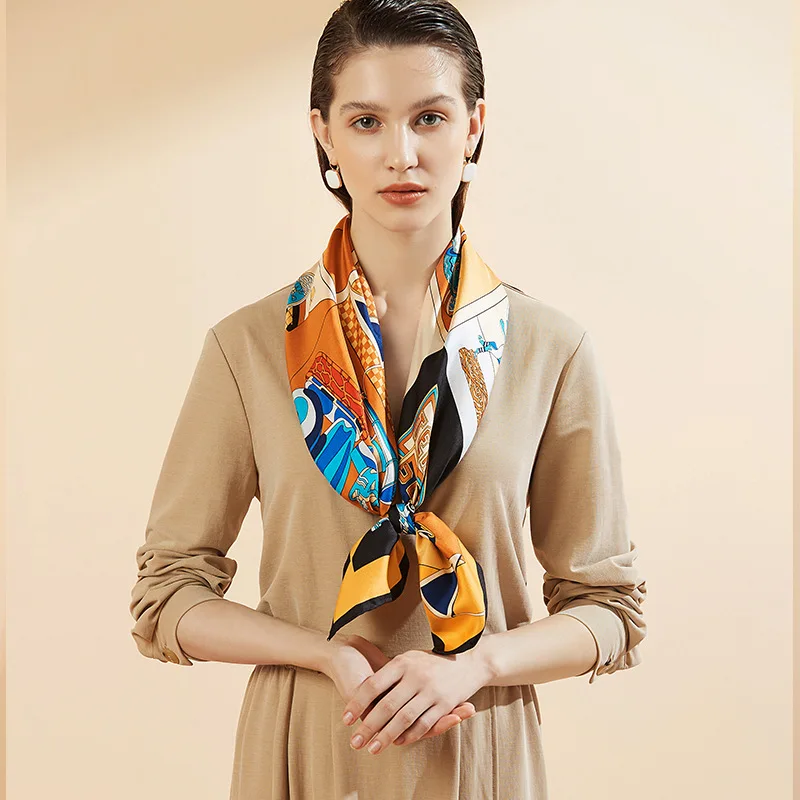 Бесплатная доставка, шарфы для женщин 2021, летние шарфики с принтом, сатиновые Саржевые 100% шелковые шарфы для шеи