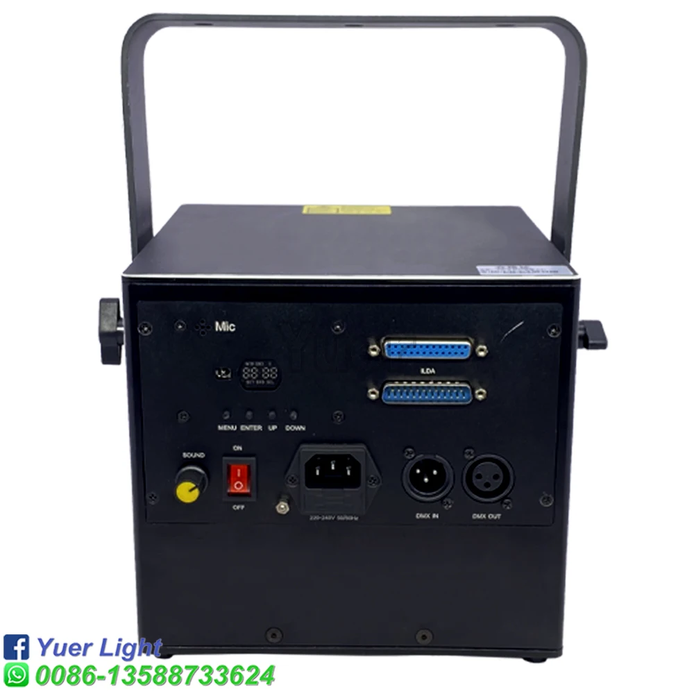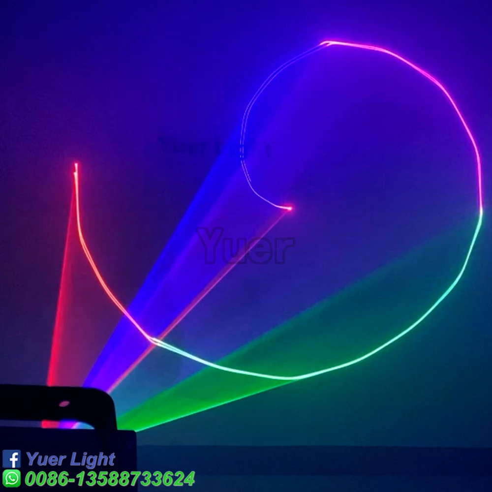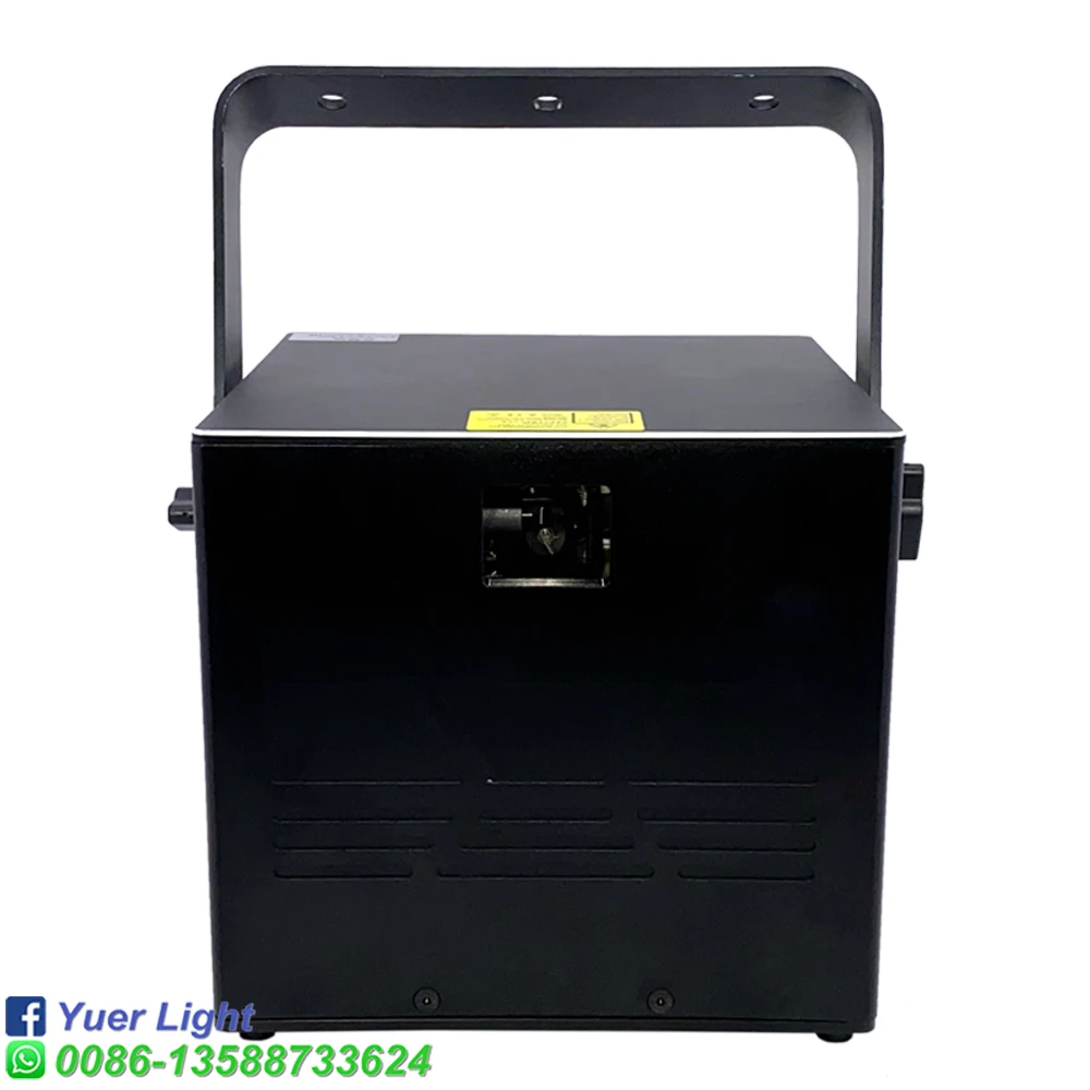 Полноцветный анимационный лазерный светильник Мощность: Green1000mw(520nm) Красный 1000 МВт (638нм) Синий 2000 МВт (470нм) Система воспроизведения: DMX512, управление звуком, авто Пульт дистанционного управления Система управления: Высокоскоростной сканер, угол сканирования ± 20 ° Эффекты: лучи, сложные графики, анимация Программирование: Может программировать балки, анимацию Интерфейс: интерфейс RJ45 (DMX512) Мощность питания: переменный ток 110/220V 50/60HZ Рабочая температура: 20 - 35 ℃