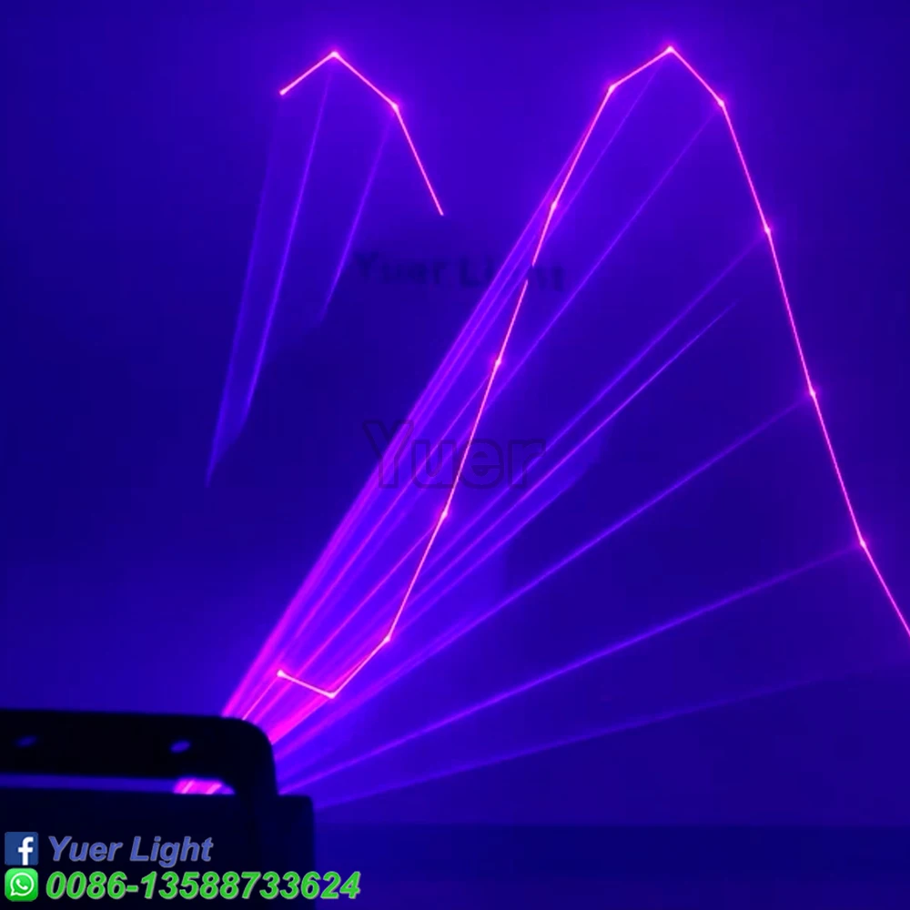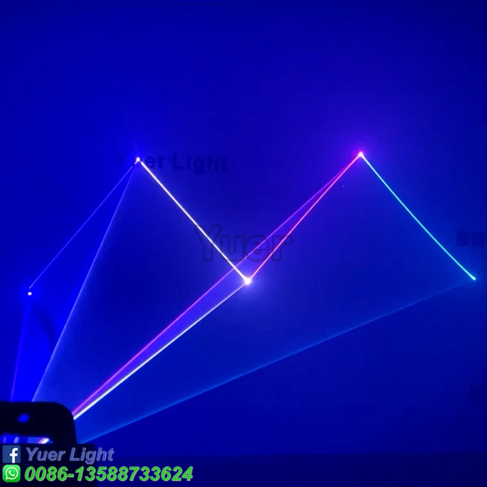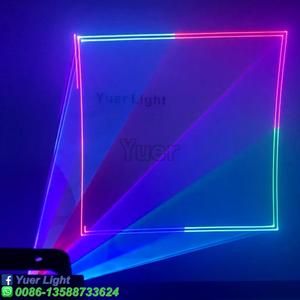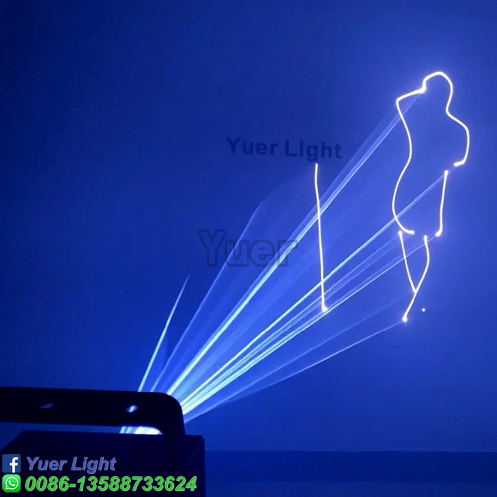 Полноцветный анимационный лазерный светильник Мощность: Green1000mw(520nm) Красный 1000 МВт (638нм) Синий 2000 МВт (470нм) Система воспроизведения: DMX512, управление звуком, авто Пульт дистанционного управления Система управления: Высокоскоростной сканер, угол сканирования ± 20 ° Эффекты: лучи, сложные графики, анимация Программирование: Может программировать балки, анимацию Интерфейс: интерфейс RJ45 (DMX512) Мощность питания: переменный ток 110/220V 50/60HZ Рабочая температура: 20 - 35 ℃