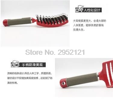 Особенности: Щетина и Расчёска с нейлоновой щетиной головы: Головка гребня изготовлена из щетины и нейлона, ее легче чистить. Арочная головка гребня: Арочный дизайн, элегантный внешний вид. Функция массажа: Круглые зубцы для волос могут массировать вашу голову, что способствует росту волос. Мягкая ручка: Ручка изготовлена из резины, более мягкая и удобная. Нескользящая конструкция: Нескользящая конструкция позволяет удобно держать. Спецификация: Тип: парикмахерский инструмент Материал: щетина, нейлон, акрилонитрил, бутадиен, стирол и Резина Цвет: красный Размер изделия: прибл. 25*7,5 см Вес изделия: прибл. 90,0 г Посылка: 1 * расческа opp посылка |