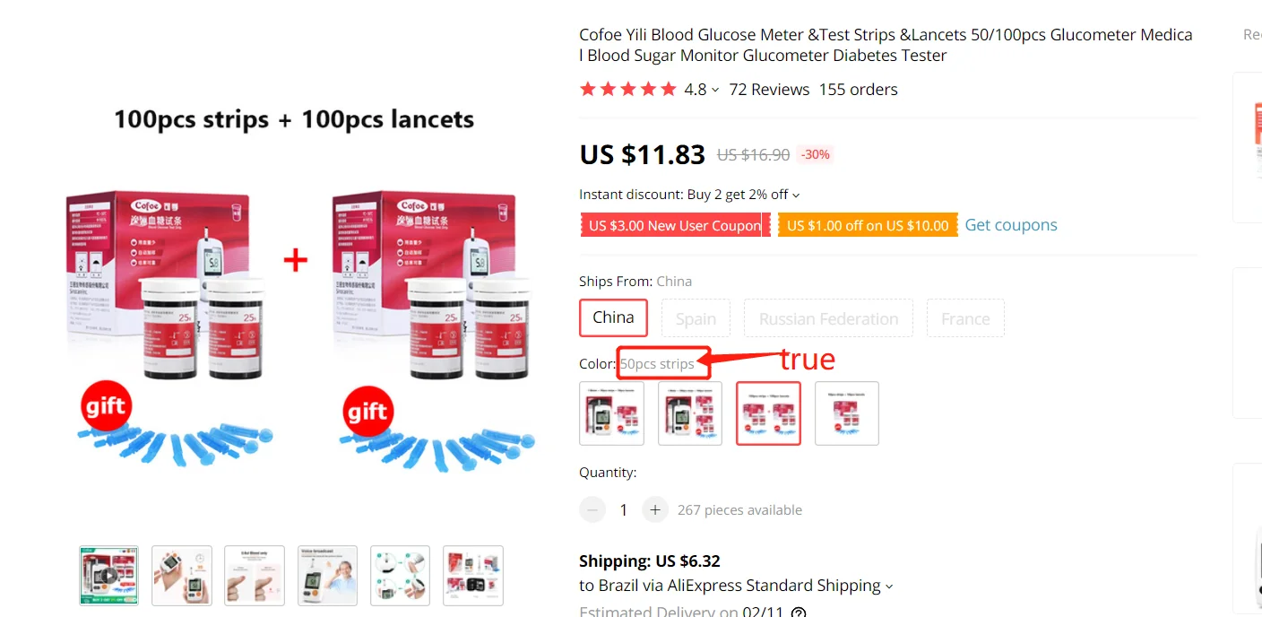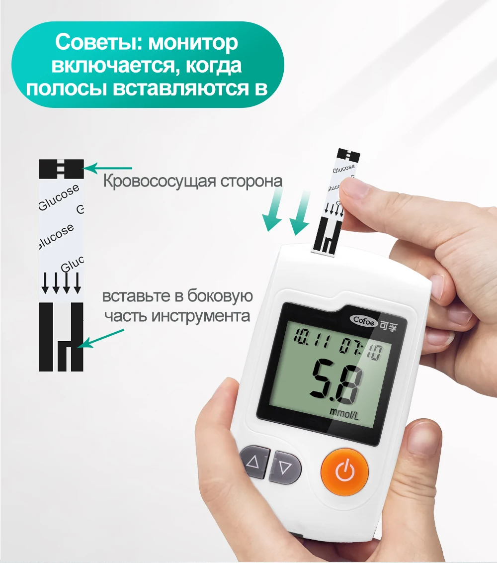 * Из-за авиационных ограничений батарея в комплект не входит! Руководство на китайском языке, если вы хотите английский, пожалуйста, свяжитесь с нами. * Единица машины только ммоль / л! Пересчитано с ммоль / л в мг / дл (мМоль / л) умножить на 18. * Срок годности тест-полосок - ноябрь 2022 года. Пожалуйста, используйте в течение 6 месяцев после открытия флакона с тест-полосками.