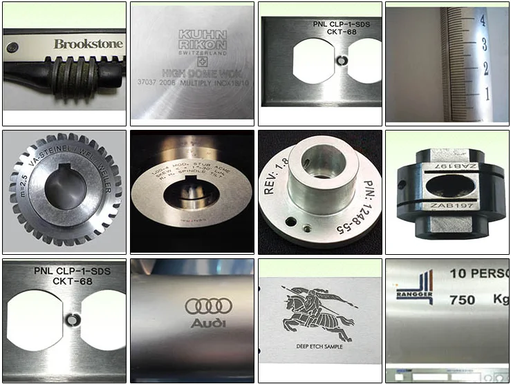 Машина может работать с большинством применений для маркировки металла, таких как золото, серебро, нержавеющая сталь, латунь, алюминий, сталь, железо и т. д., а также может отмечаться на многих неметаллических материалах, такие как ABS, нейлон, PES, PVC, Makrolon Вот образец волоконно-лазерной маркировочной машины: