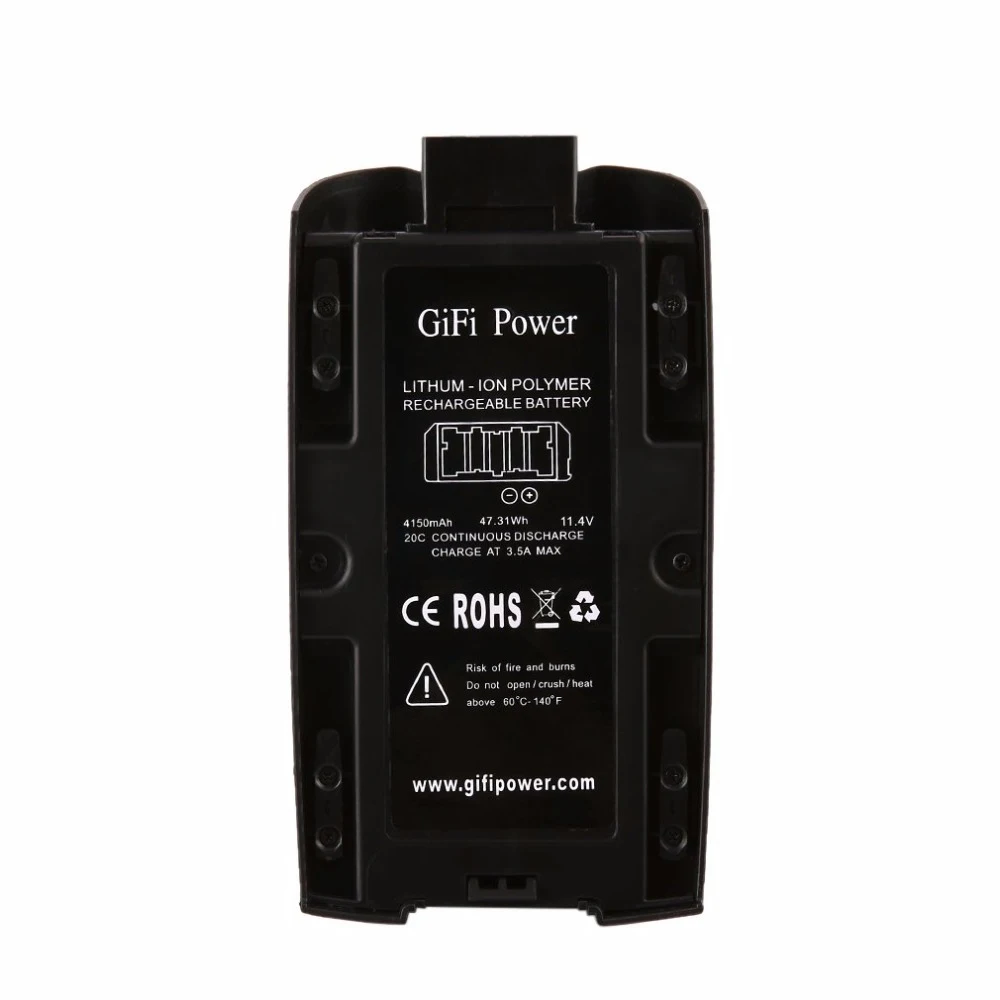 Аккумуляторная батарея -Простота установки и портативность для переноски -Скорость непрерывного разряда 20C -Высокая плотность энергии с легким весом -Более длительный жизненный цикл при надлежащем использовании -Емкость аккумулятора 4150 мАч может поддерживать более длительное время работы -Подходит для дрона Parrot Bebop 2 RC Описание: Этот lipo аккумулятор предназначен для квадрокоптера Parrot Bebop 2. Благодаря высокой производительности ваш Дрон может лететь дольше, чем оригинал. Если вы супер Поклонники дрона RC, это будет хороший и экономичный выбор. Характеристики: Бренд: GIFI power Емкость аккумулятора: 4150 мАч Скорость разряда: 20C Секция батареи: 3 S (11,4 V) Подходящий Дрон: Parrot Bebop 2 RC Дрон Размеры: 115*60*30 мм (отклонение из-за ручного измерения) Вес: 230 г Размер упаковки: 15,5*9,7*7,3 см Вес упаковки: 260 г