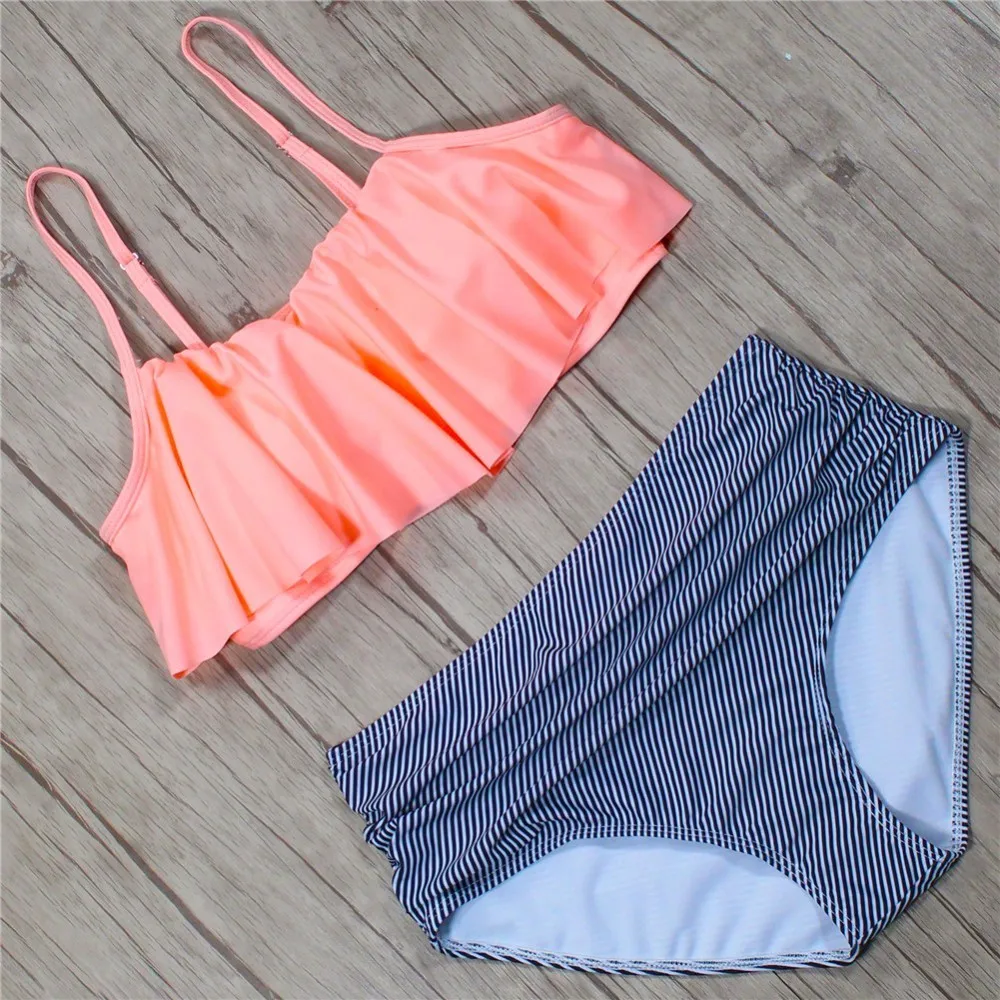 Розовый пикантный черный трикини бикини для женщин 2017 полосатый бандажный