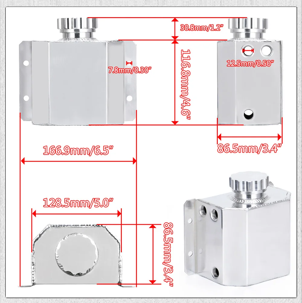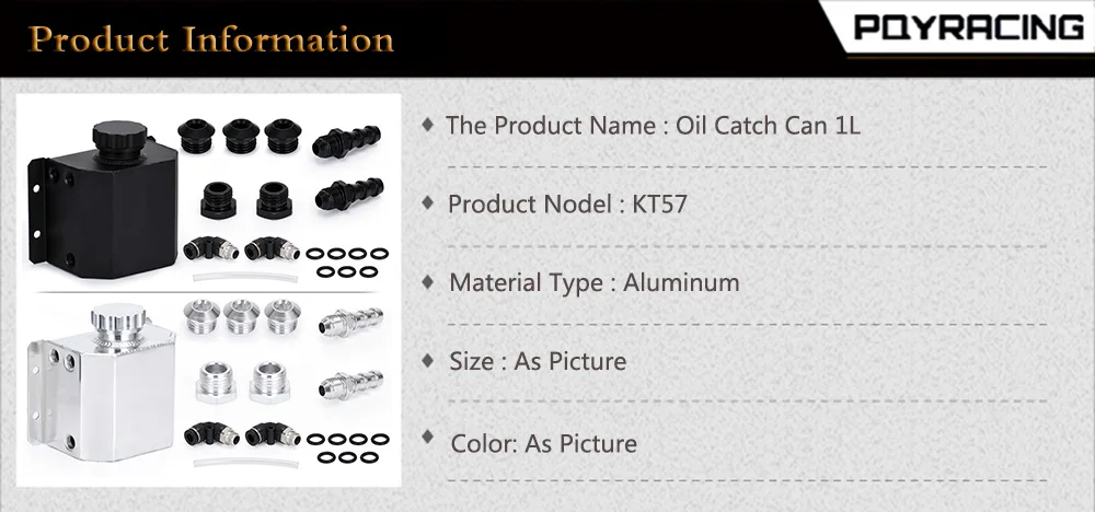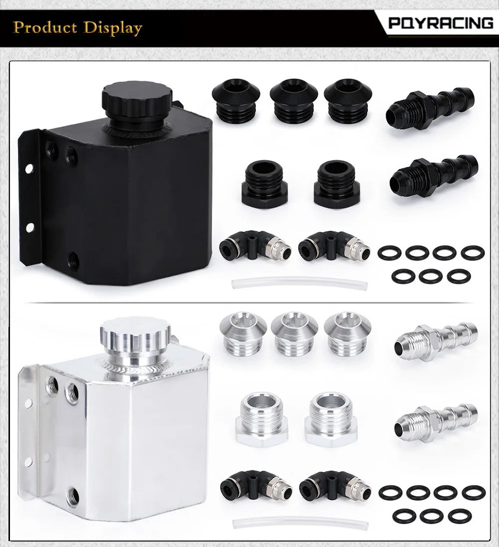 - Complete kit with reservoir cap, easy to install.Install this oil catch can away from heat source as far as possible.