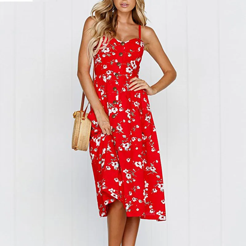 Название: Летнее платье для женщин 2018, длинное пляжное платье на бретелях с цветочным принтом в горошек, женский сарафан, сексуальные повседневные свободные элегантные женские платья
