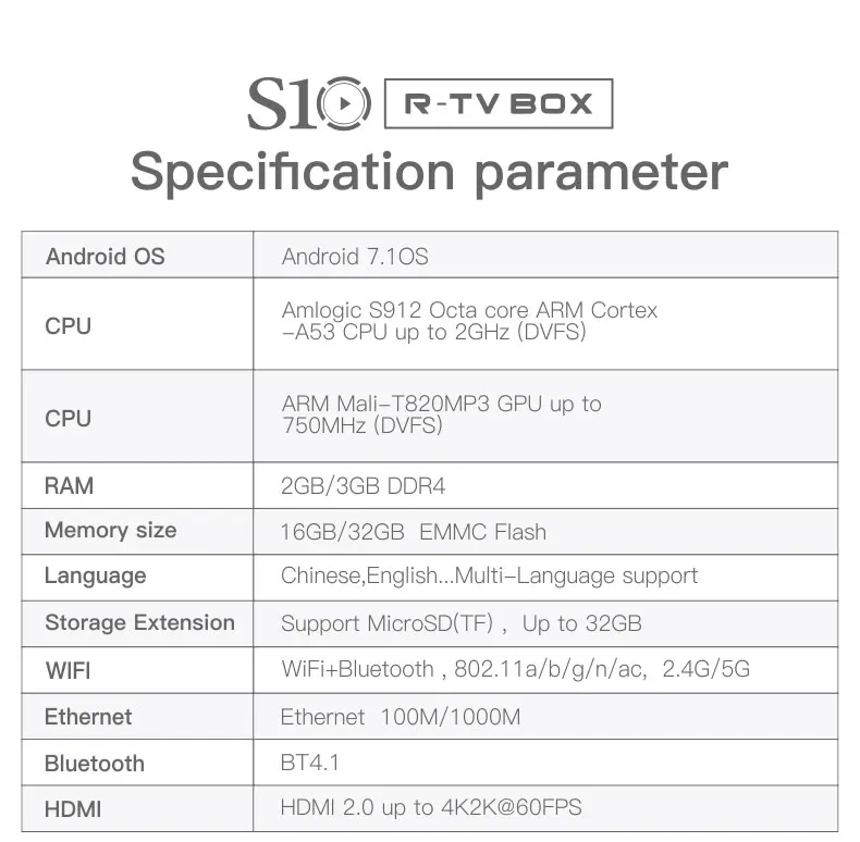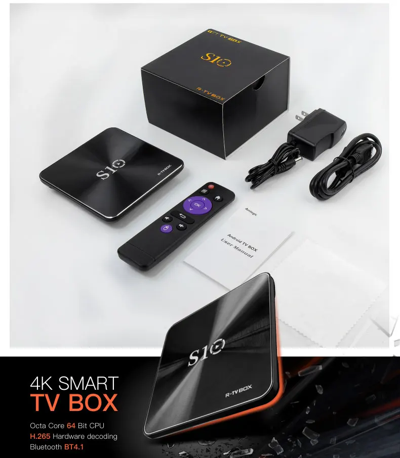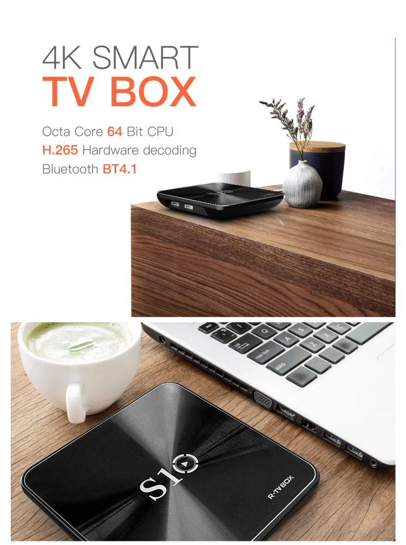 R-TV BOX S10 Android 7,1 Smart TV Box S912 Восьмиядерный DDR4 3гб Ram 64 Гб ROM 2,4G/5G Dual WIFI 4K 3D H.265 1000M Lan Ethernet BT 4,1