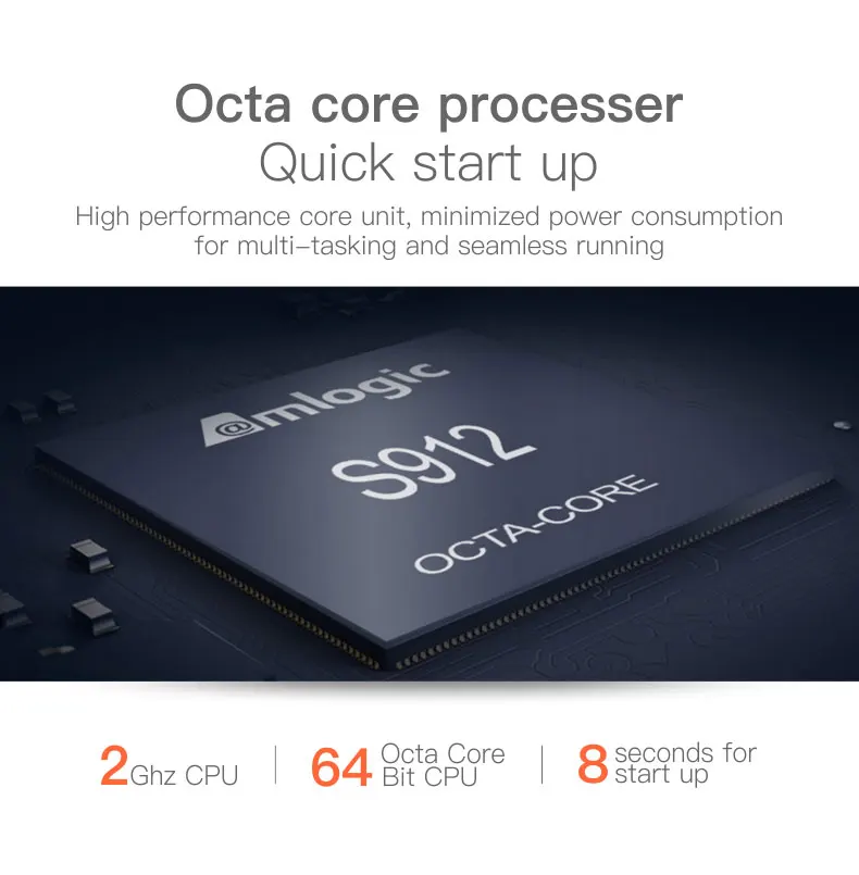 -Процессор Amlogic S912 64 бит Восьмиядерный ARM Cortex-A53 до 2 ГГц