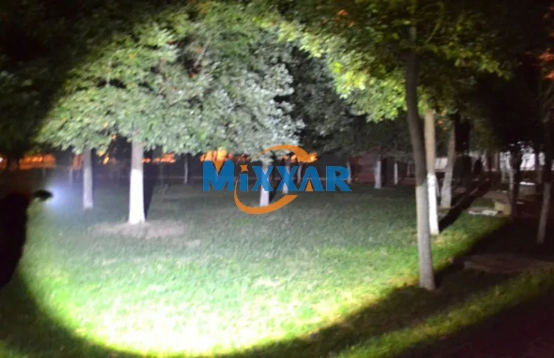-С помощью T6 лампы, Максимальная яркость 9000лм,Расстояние облучения> 500 м