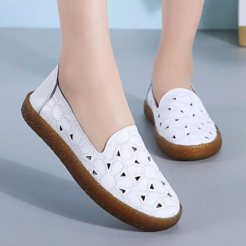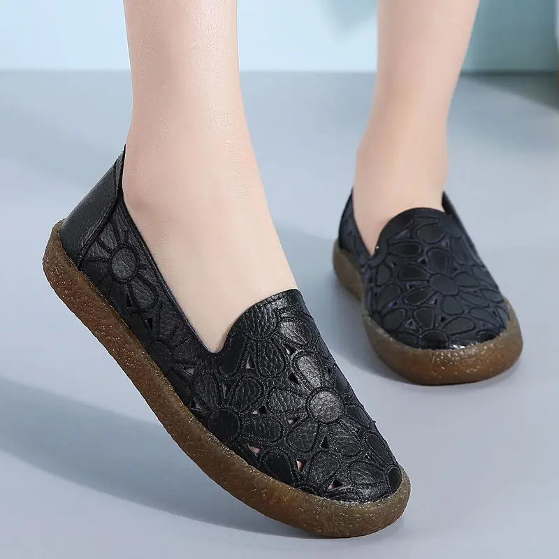 Женские лоферы на плоской подошве с цветочным узором; Модная повседневная обувь из телячьей кожи с перфорацией