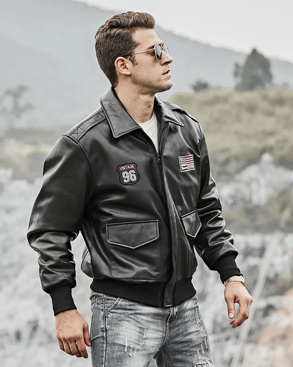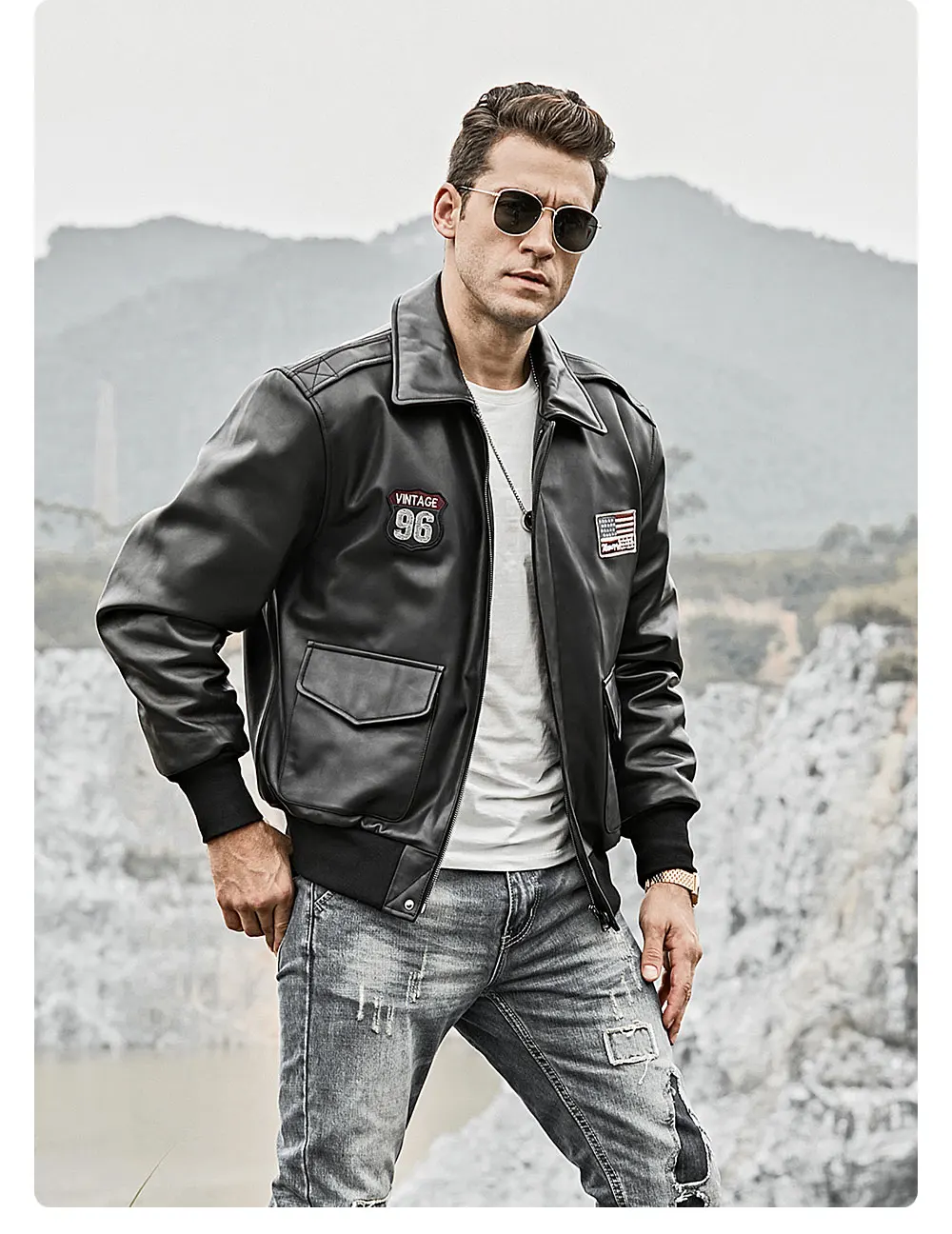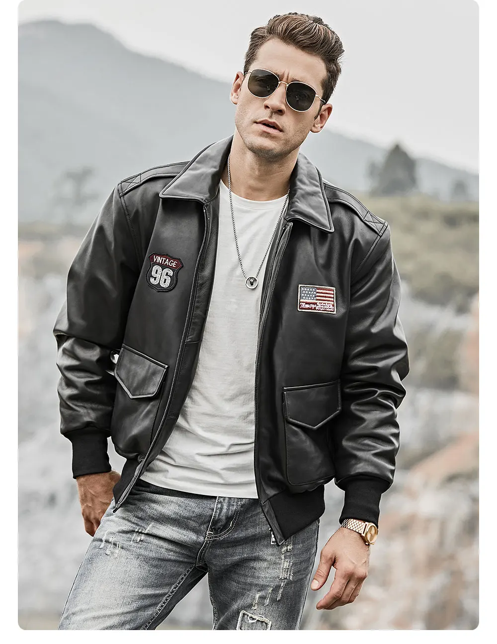 Мужская винтажная кожаная куртка черный мотоциклетный жакет из натуральной