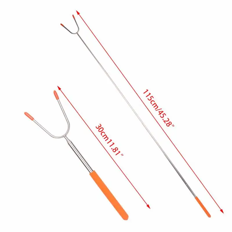 Принятие высококачественной нетоксичной нержавеющей стали, телескопическая Обжиговая палка подходит для многих видов активного отдыха, таких как кемпинг и пляжные экскурсии, воссоединение семьи и друзей, день рождения и так далее. Силиконовая ручка вилок устойчива к высоким температурам, а зубцы достаточно острые, чтобы приклеить еду. Кроме того, длину вилок можно регулировать, поэтому вы обязательно будете веселиться и безопасно общаться с друзьями и семьей.