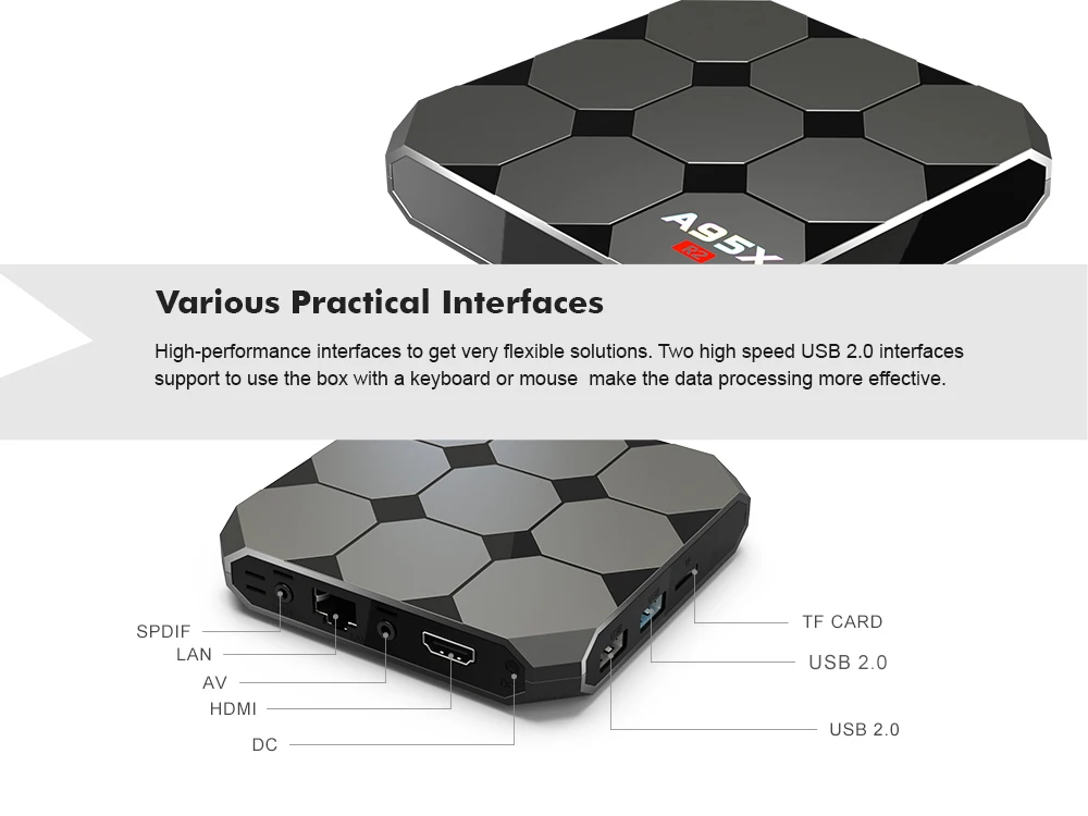 A95X R2 Android ТВ коробка 2018 новые экономически эффективным чип Smart S905W, поставляется с quad-core Cortex-A53 Процессор до 2 ГГц и Мали-450 GPU. Высокая эффективность, высокая интеграция, низкое потребление энергии. Он работает на Android 7,1, который имеет хорошую работу. Вы можете подключиться к миру контента и развлечений дома. Плавно смотреть телепередачи, фильмы, просмотр веб-страниц и фотографий, а также играть в игры на Android с семьей и друзьями. Это лучший выбор для вас, чтобы иметь Гладкий опыт, чтобы смотреть видео или играть в игры.